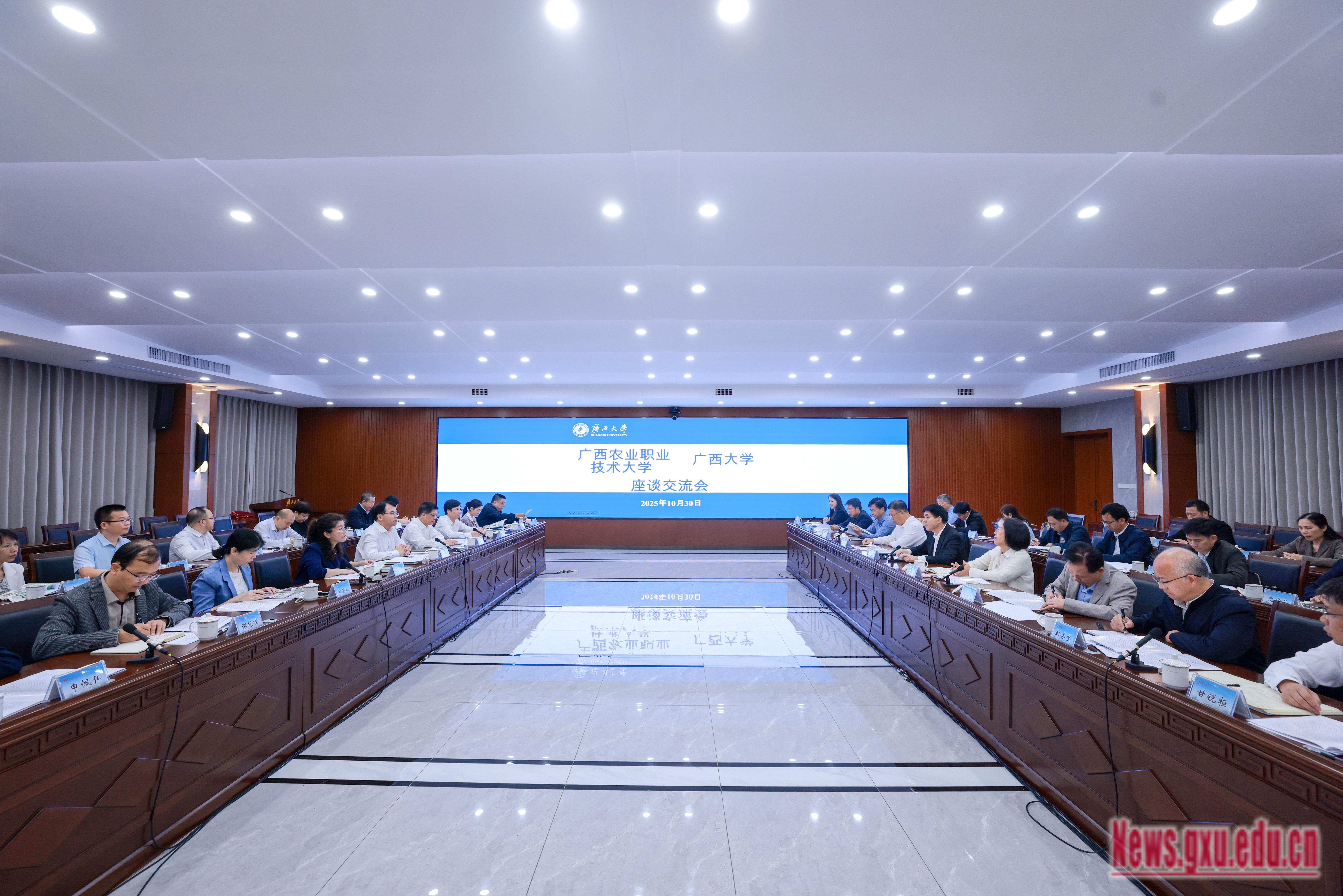 10月30日,广西农业职业技术大学党委书记文信连,党委副书记、校长李向红一行到校调研交流。校党委书记李国忠主持座谈会,党委副书记宁旭初出席座谈会。