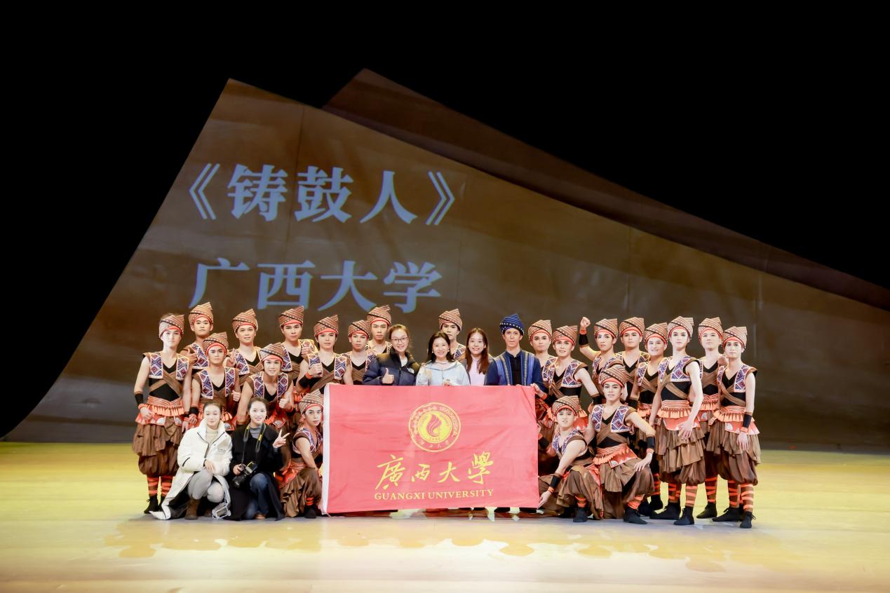 11月11日晚,由教育部与国家大剧院联合主办的全国大中小学生艺术展演舞蹈获奖作品专场演出在国家大剧院歌剧院上演。我校原创舞蹈《铸鼓人》作为广西唯一入选作品、全国高校非专业组唯一亮相作品,凭借深厚的文化底蕴与精湛的艺术呈现赢得高度赞誉。这也是我校原创作品在国家大剧院舞台上的首次亮相。