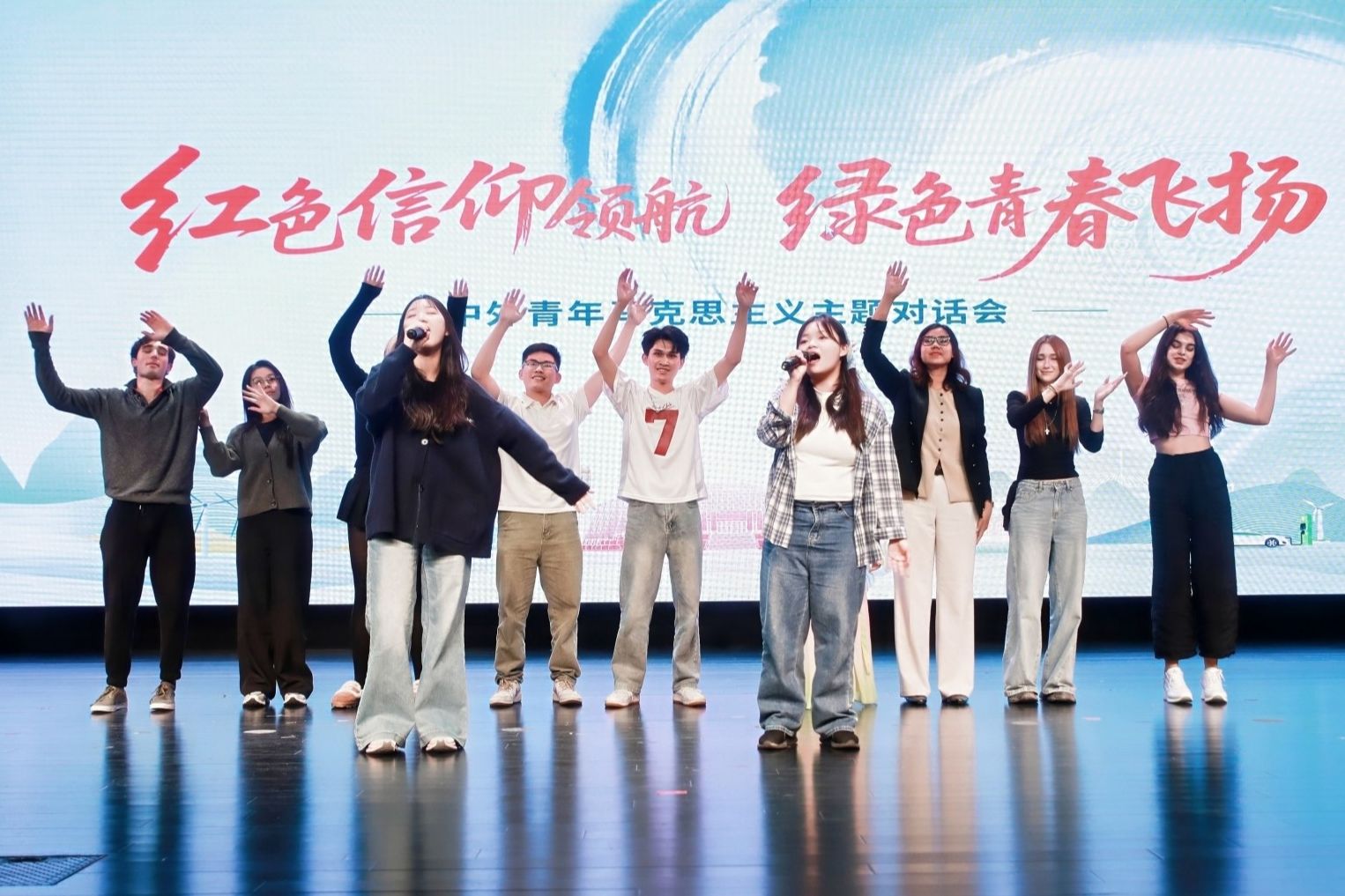 在中外青年代表分享环节,六位中外青年代表围绕马克思主义实践与个人经历展开分享。其中,马来西亚籍青年黎沁瑶分享了对黄文秀事迹的感悟,指出“奉献”和“担当”的深刻意义,承诺未来将带着镜头记录在中国看到的一切,向国际讲述更多关于理解与交流的故事;阿根廷籍青年了能以“三个没想到”讲述了在中国生活时的所见所闻,感慨中国发展中的人文温度;英国籍青年、柳州工学院外教苏菲回顾了在广西的13年时光,从语言生疏到能用柳州话接外卖电话,她笑言中国是“长大的家乡”,并表示会继续通过自媒体向世界介绍中国。