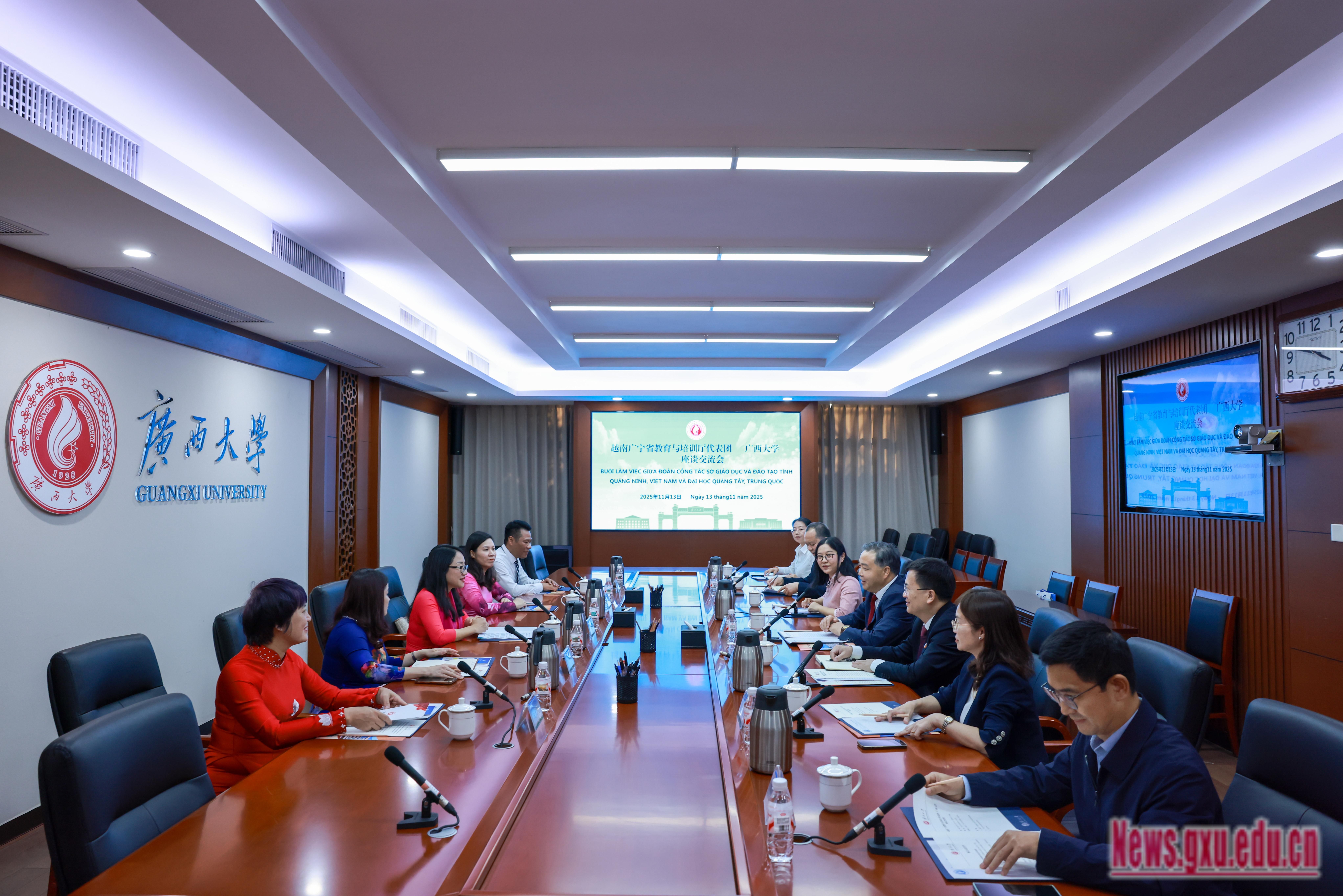肖建庄对代表团的到访表示欢迎,并介绍了我校近年来在学科建设、人才培养、科研创新等方面取得的成效。他指出,广西大学与越南教育界依托原广西南宁育才学校(越南中央学舍区)结下的深厚渊源,为双方教育合作奠定了坚实基础。他期待以此次交流为契机,与广宁省建立从基础教育到高等教育的全链条合作关系,在师生互访、科研联合攻关、语言文化交流等领域深化协作。同时,他欢迎越南广宁省优秀学子赴我校交流学习,共同夯实合作根基,推动中越教育合作走深走实。