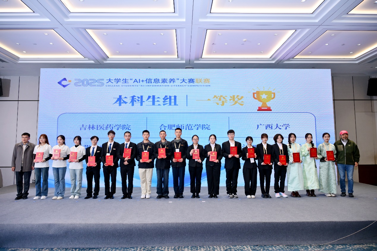 近日,2025年大学生“AI+信息素养”大赛全国联赛在成都落幕。本次大赛由教育部高等学校图书情报工作指导委员会、四川省教育厅、重庆市教育委员会指导,2025年大学生“Al+信息素养”大赛组委会主办,四川省普通高等学校图书情报工作指导委员会、四川大学、重庆市高等学校图书情报工作委员会、重庆大学承办。我校代表队从本科生组50支队伍中脱颖而出,最终荣获一等奖。