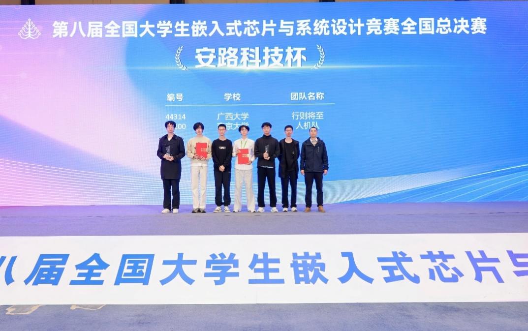 近日,第八届全国大学生嵌入式芯片与系统设计竞赛全国总决赛在南京集成电路培训基地举办。我校参赛队经过激烈角逐,斩获全国一等奖1项、三等奖2项,并成功问鼎“安路科技杯”企业大奖,该奖项仅授予五大企业赛道评选出的最佳队伍,创下自赛事举办以来广西高校的最好成绩。
