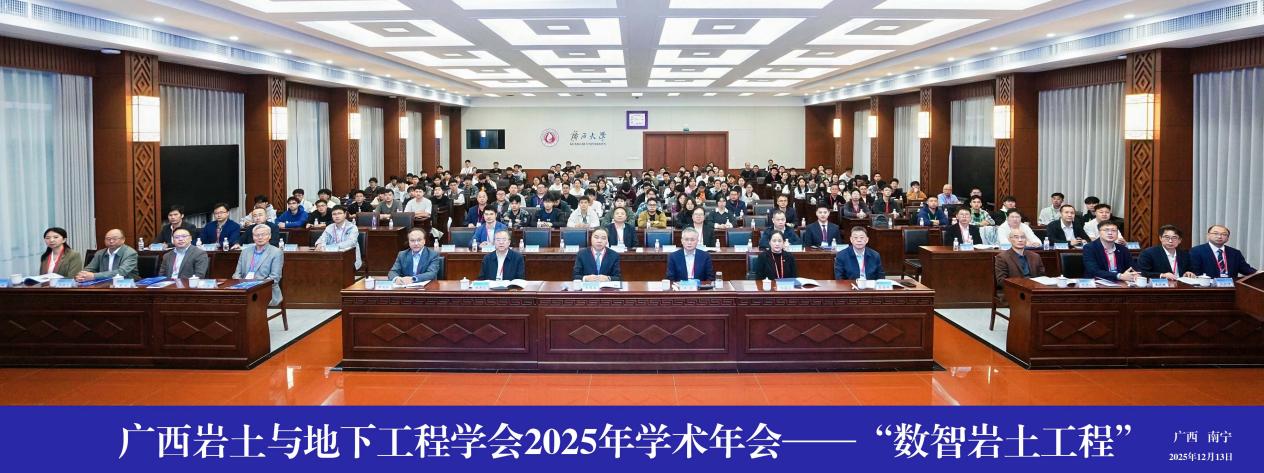 12月12日至14日,由广西岩土与地下工程学会、广西大学土木建筑工程学院联合主办的广西岩土与地下工程学会2025年学术年会——“数智岩土工程”在我校君武馆玉林厅召开。校党委副书记、校长肖建庄出席开幕式并致词,天津大学副校长郑刚出席开幕式。