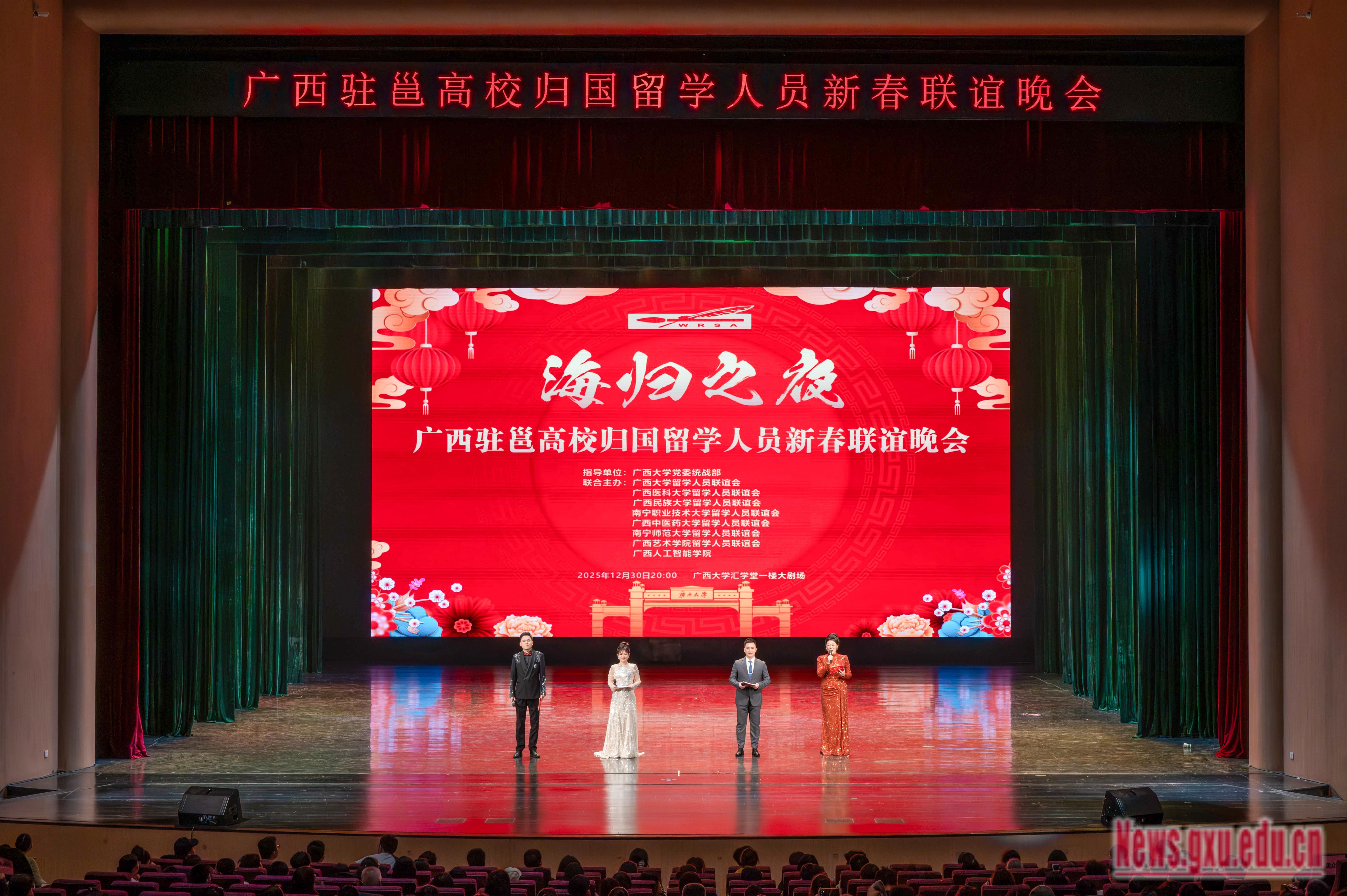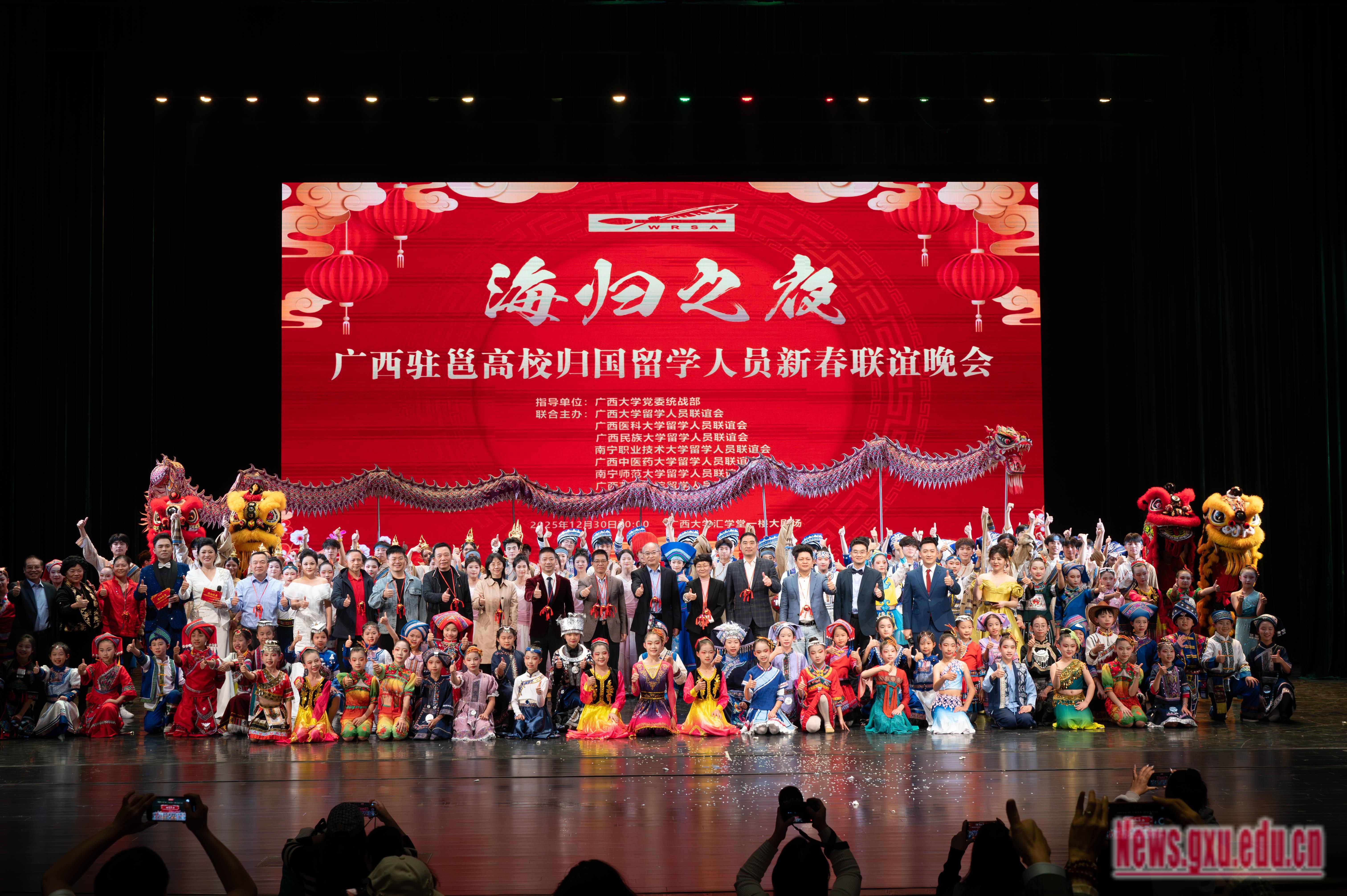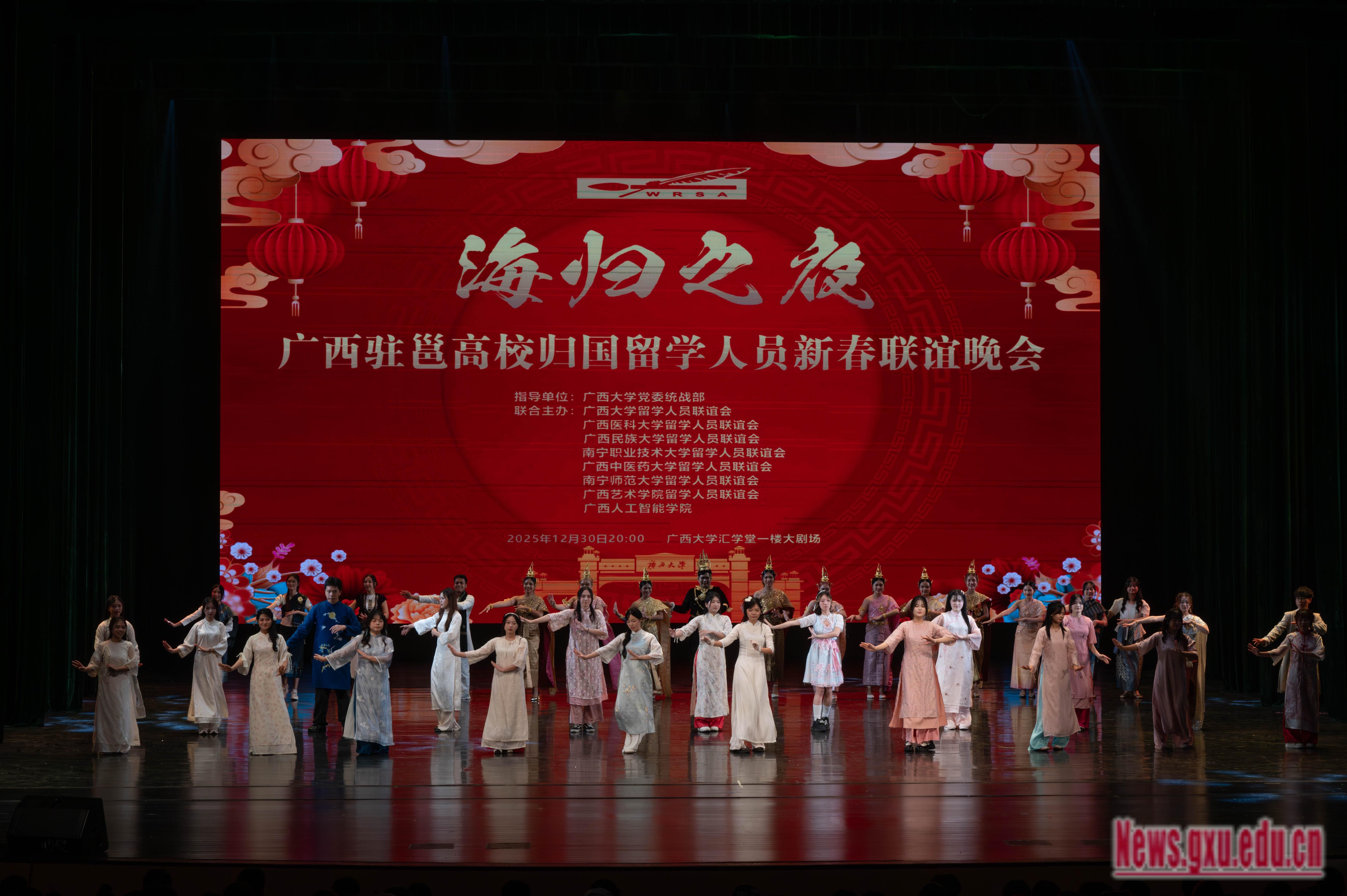 此次晚会由我校留学人员联谊会联合广西医科大学、广西民族大学等高校联合主办,搭建了跨校人才交流的桥梁,在艺术展演中深化留学报国的初心,为高层次人才凝聚与发展注入文化动能。