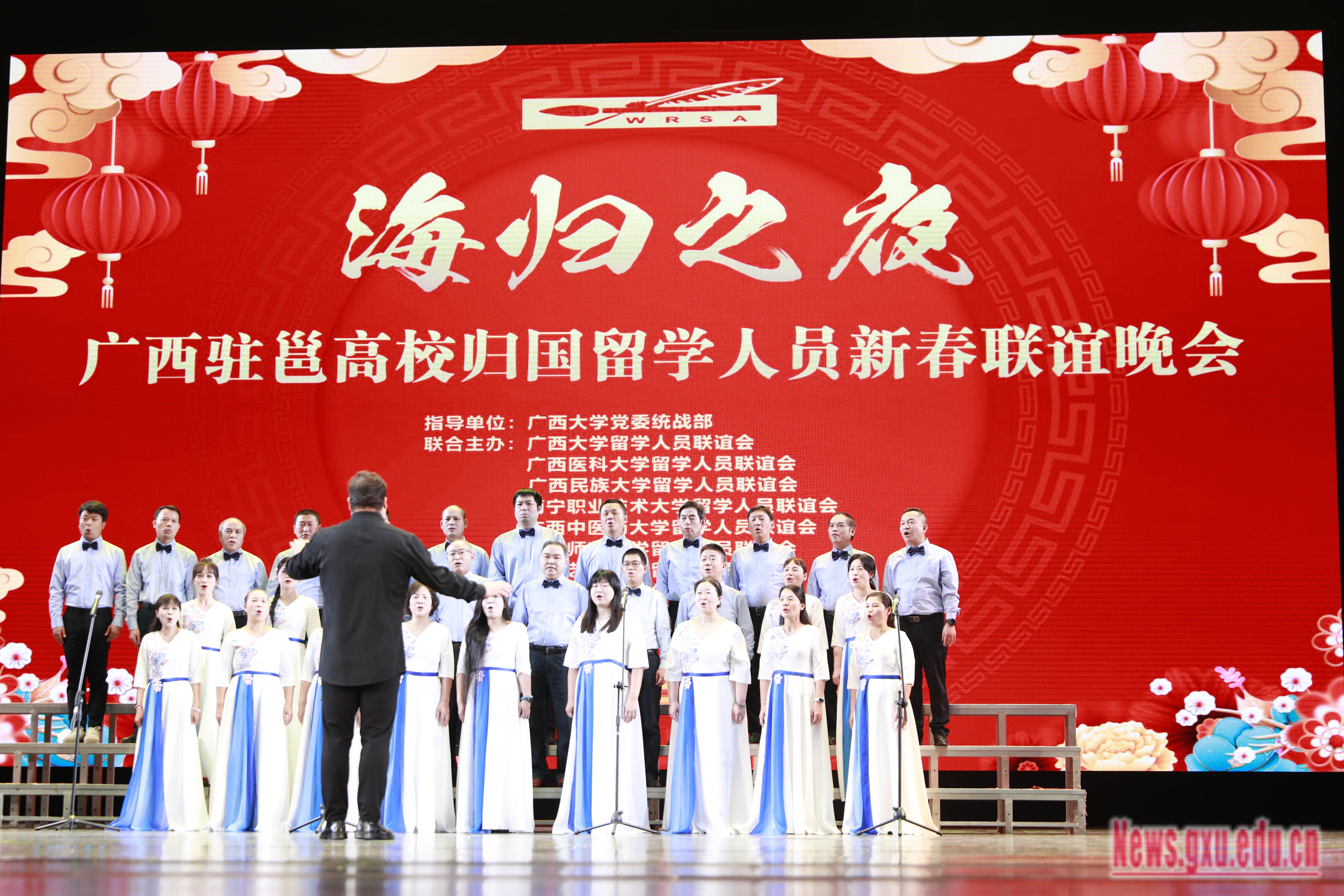 自治区党委统战部广西欧美同学会秘书处、自治区党委教育工委统战部、驻邕高校党委统战部负责同志,部分归国留学人员代表及优秀校友代表观看晚会。