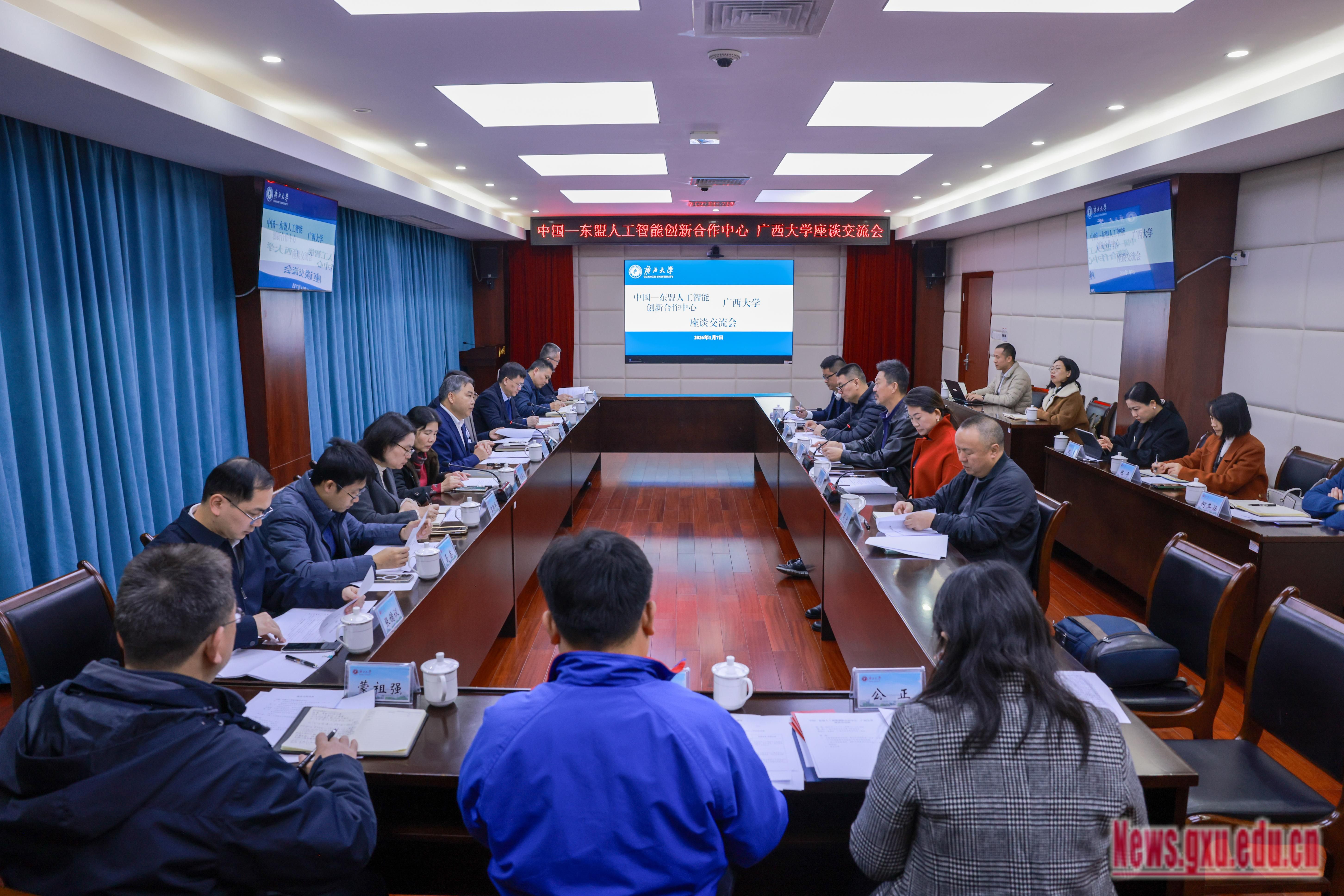 座谈会上,双方围绕人才培养、实验室共建、联合攻关项目、AI场景落地、“AI+各领域”等方面进行了深入探讨,并就共同推进广西大学人工智能微专业、项目申请、智能学院建设等达成共识。