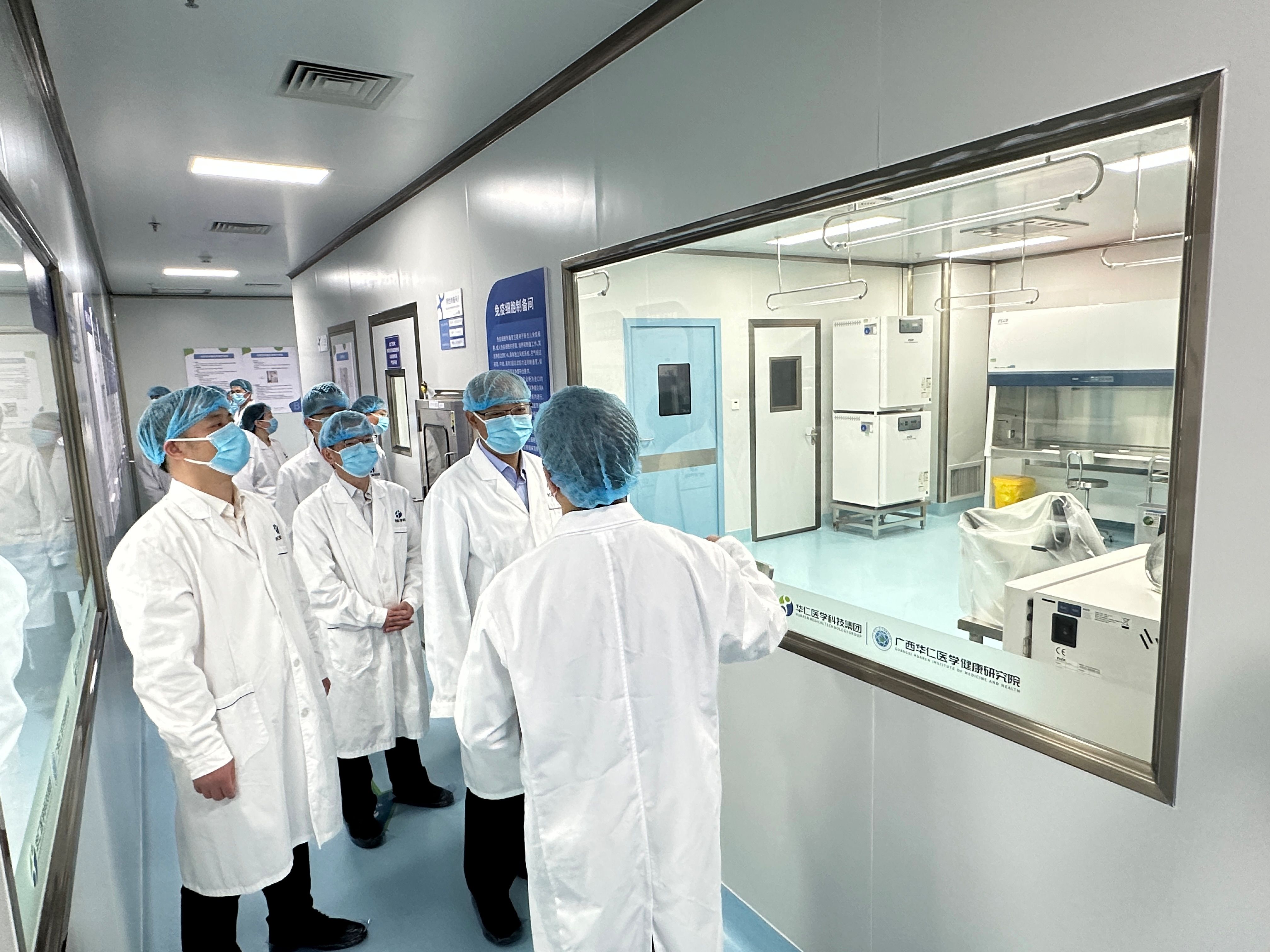 冯家勋一行参观了华仁医学科技集团联合实验中心,详细了解药物 CRDMO、细胞及基因疗法等领域技术创新与平台建设情况。