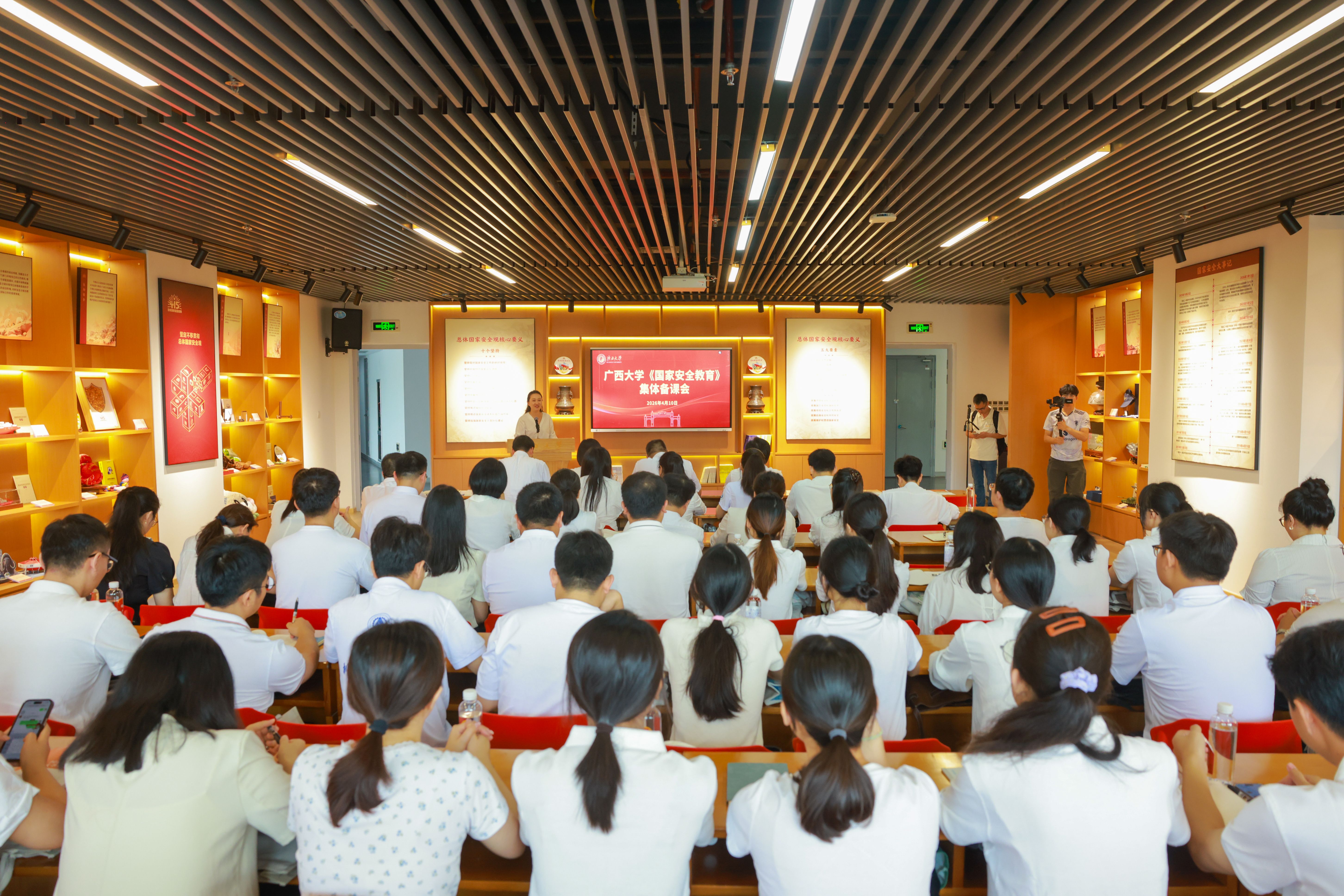 仪式结束后,与会领导、嘉宾与师生代表共同参观了宣教馆,深入了解总体国家安全观的核心要义、涵盖的二十一个方面科学内涵、重点领域安全知识、典型警示案例以及广西在国家安全教育方面的实践成果。为切实提升国家安全教育实效,同步举办了《国家安全教育》课程集体备课会及主题报告会。来自相关领域的专家、教师齐聚一堂,深刻阐释了青年一代在维护国家安全中的使命担当,有效强化了参与师生的国家安全意识和法治素养。