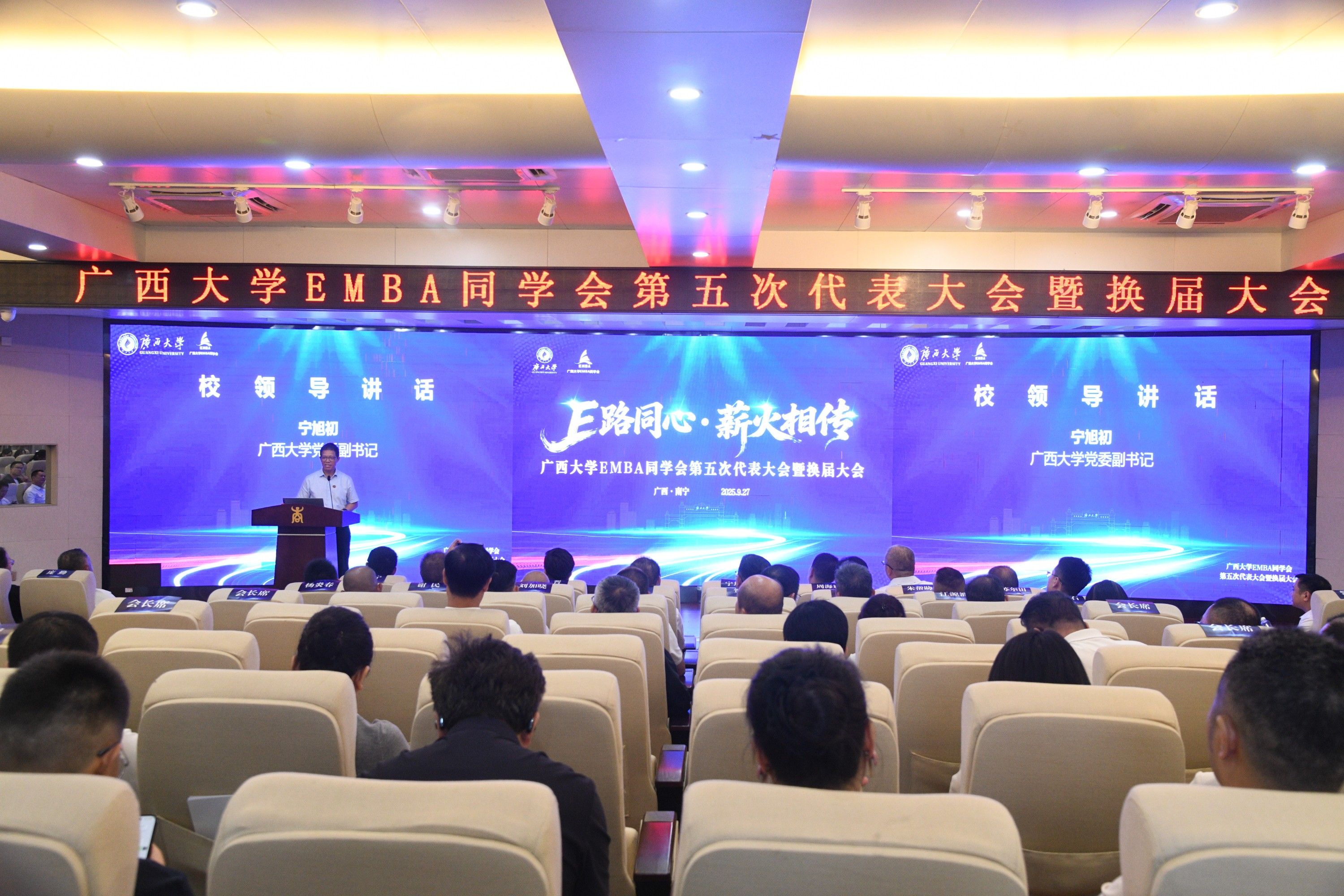 9月27日,广西大学EMBA同学会第五次代表大会暨换届大会在我校举行。校党委副书记宁旭初出席大会。