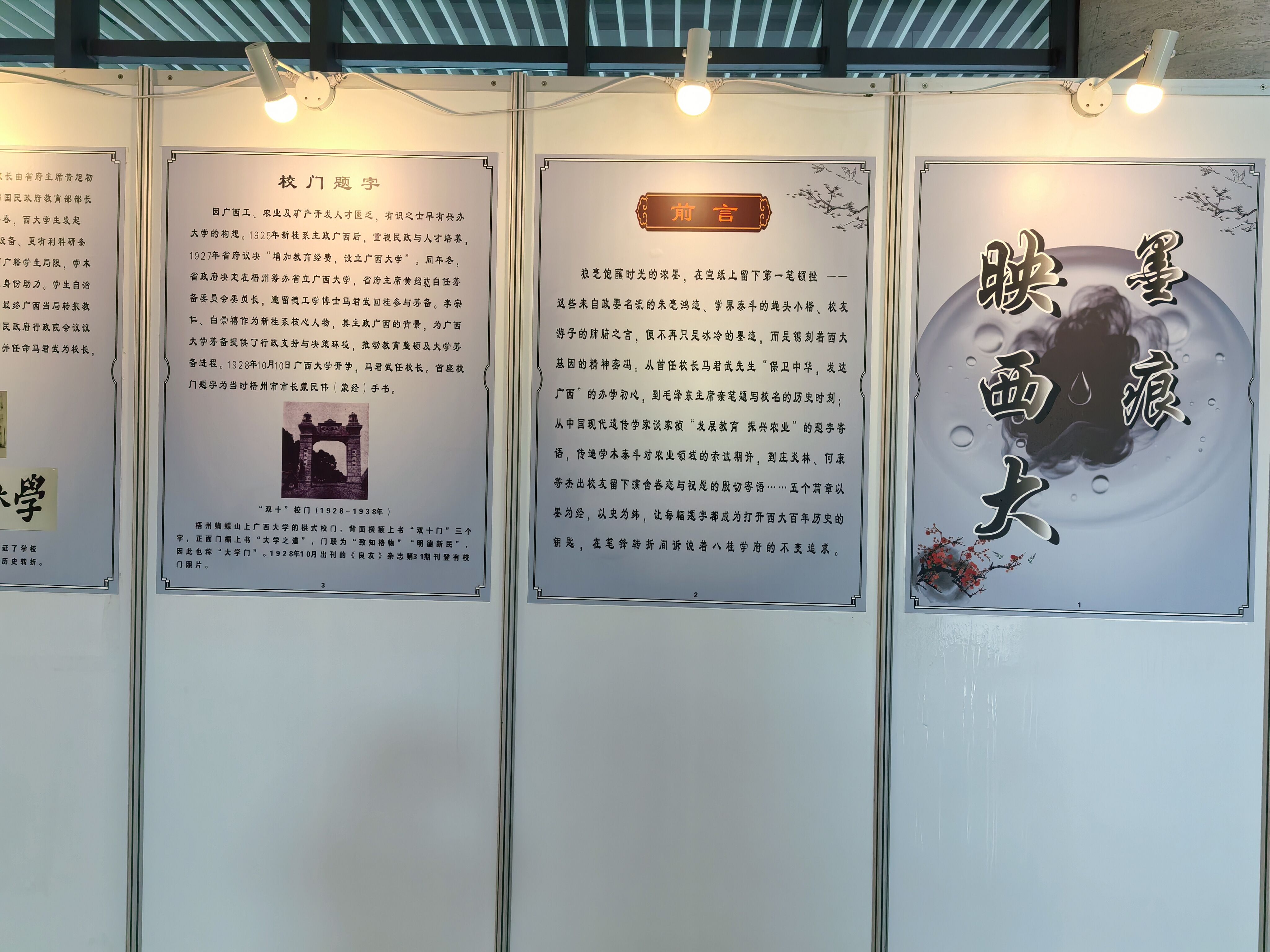 10月13日,广西大学校史专题系列展之“墨痕映西大”名家题词展在图书馆南一楼大厅开展。本次展览精心遴选档案馆珍藏的78幅珍贵题词,时间从1928年建校延续至今,横跨近百年办学历程。