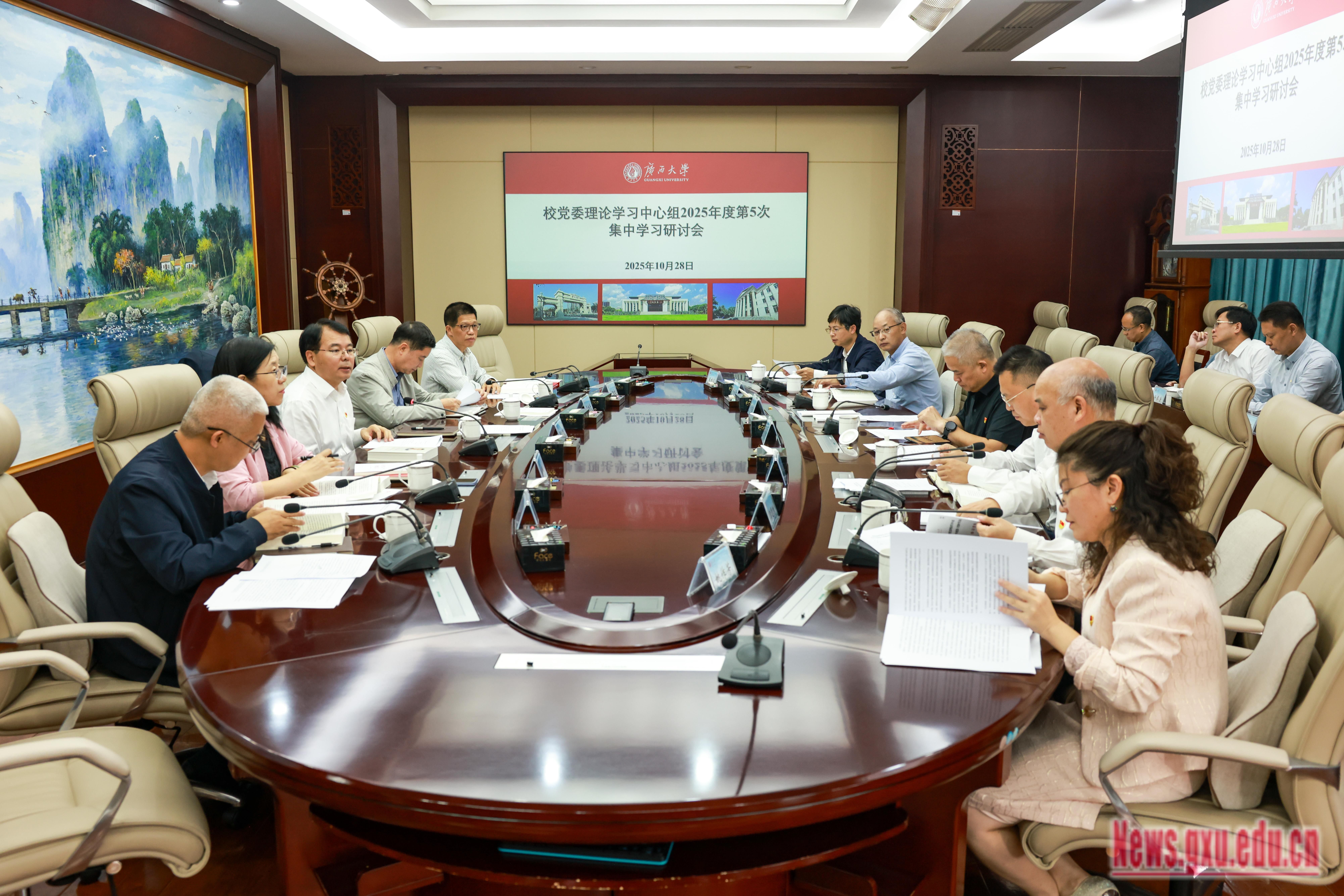 10月28日下午,校党委理论学习中心组召开2025年度第5次集中学习会,专题学习习近平总书记在党的二十届四中全会上的重要讲话精神和全会精神,学习《习近平谈治国理政》第五卷。校党委书记李国忠主持会议并作领学和总结讲话,校党委理论学习中心组成员参加会议。