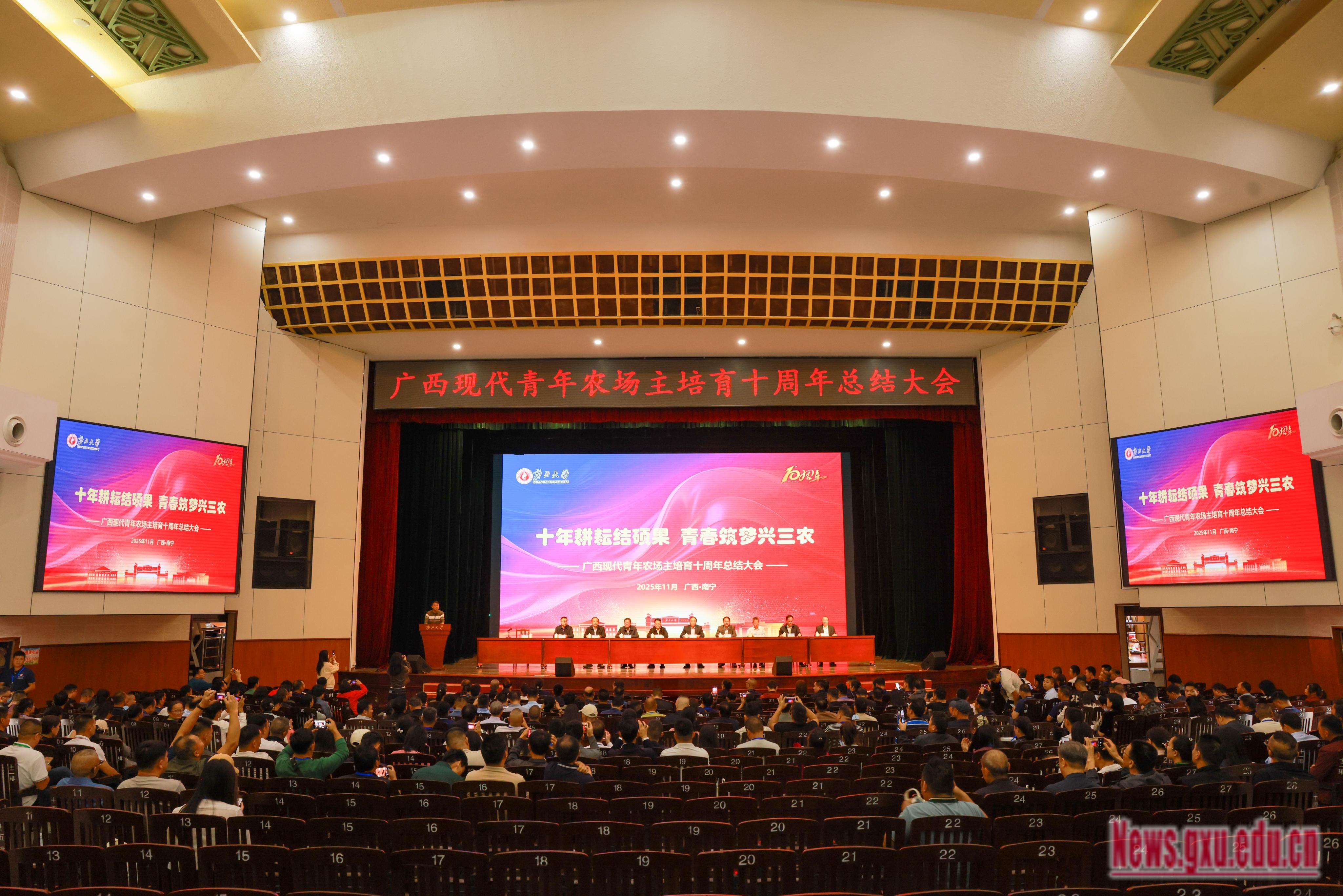 11月7日,我校在大礼堂举办广西现代青年农场主培育十周年总结大会。自治区农业农村厅二级巡视员黄庭军,校党委常委、副校长于文进出席大会并致辞。自治区农业农村厅原一级巡视员李如平、原二级巡视员陈明伟出席大会。