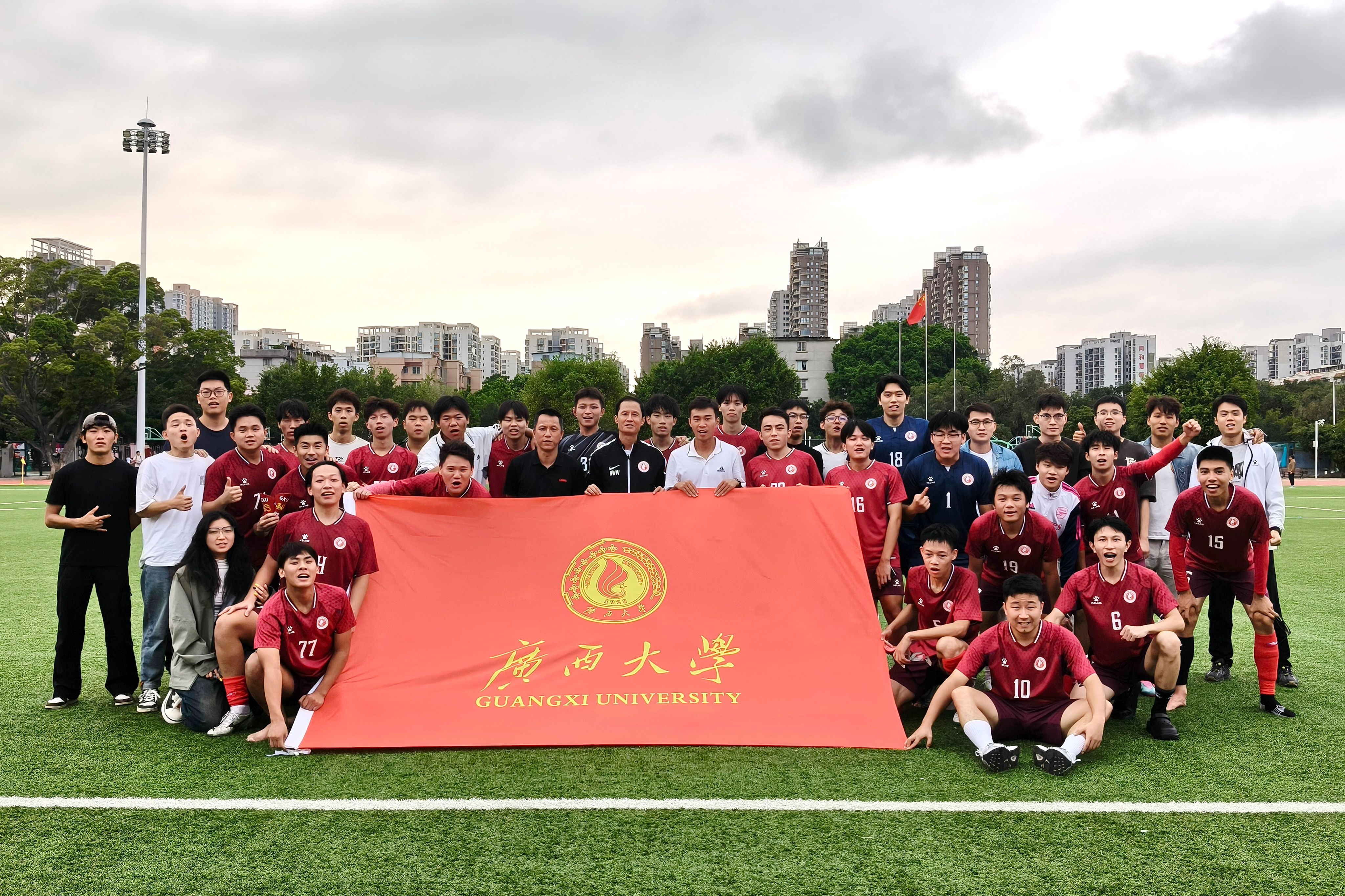 11月9日,广西第十四届学生运动会足球项目比赛(以下简称“学运会足球项目比赛”)暨第十一届广西“千里杯”校园足球联赛男子主客场阶段第二轮(次回合)在我校西校园足球场打响。广西大学队以2:0战胜卫冕冠军桂林理工大学队夺得冠军。