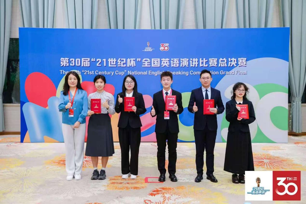 11月17日,第30届中国日报社“21世纪杯”全国英语演讲比赛总决赛在杭州圆满落幕。我校外国语学院学子在比赛中表现优异,本科生陈芮凝(右一)在全国赛中斩获一等奖,李馨怡、隗哲涵在区级赛中分别获得二等奖、三等奖。