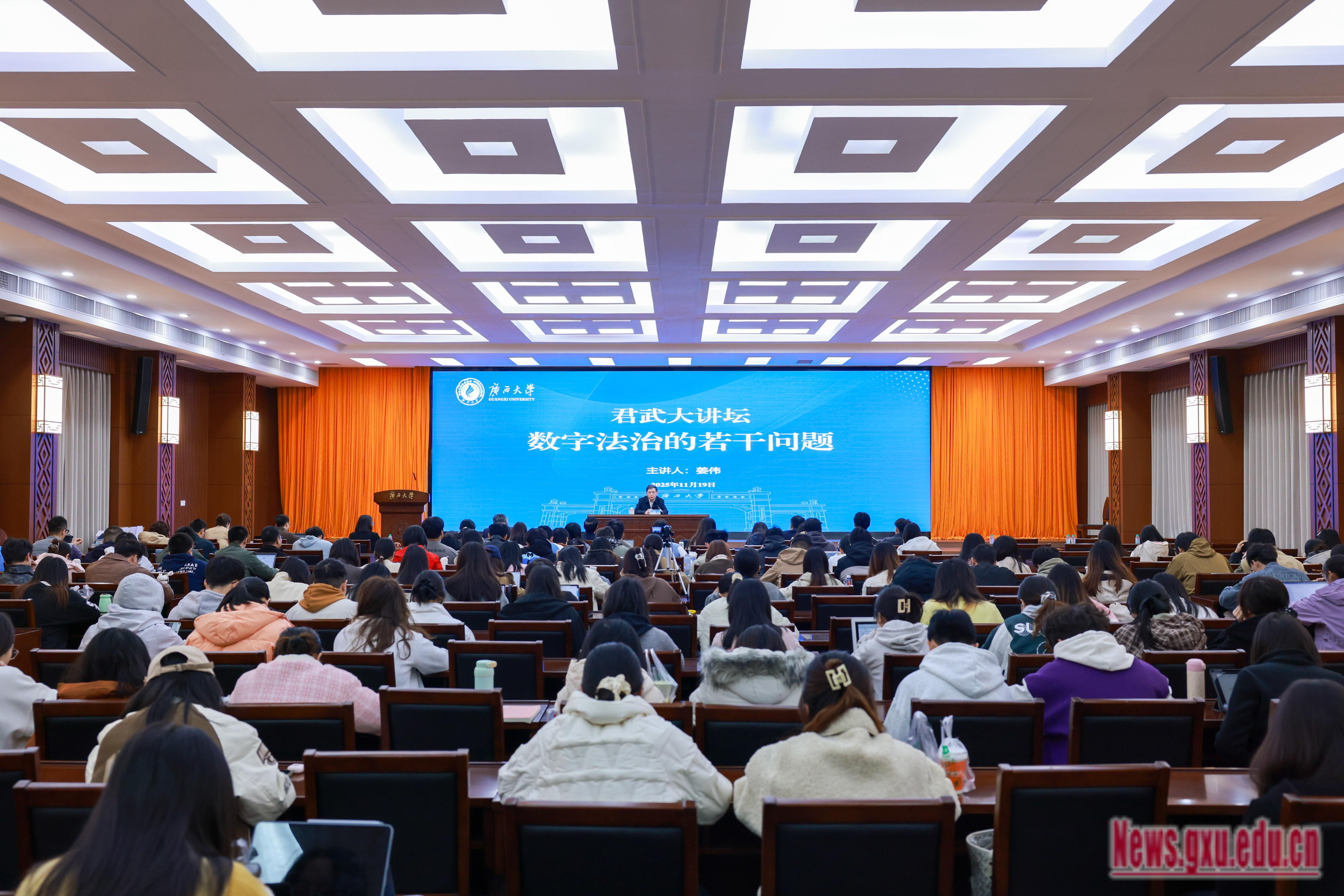 11月19日,最高人民法院咨询委员会副主任委员、中国法学会网络与信息法学研究会会长、教授姜伟应邀到校,以“数字法治的若干问题”为题,为我校师生作君武大讲坛报告。校党委书记李国忠会见了姜伟,对他来校做报告表示欢迎和感谢,并与前来出席活动的自治区高级人民法院党组副书记、常务副院长赵志军就法治人才培养、学科建设等进行深入交流。