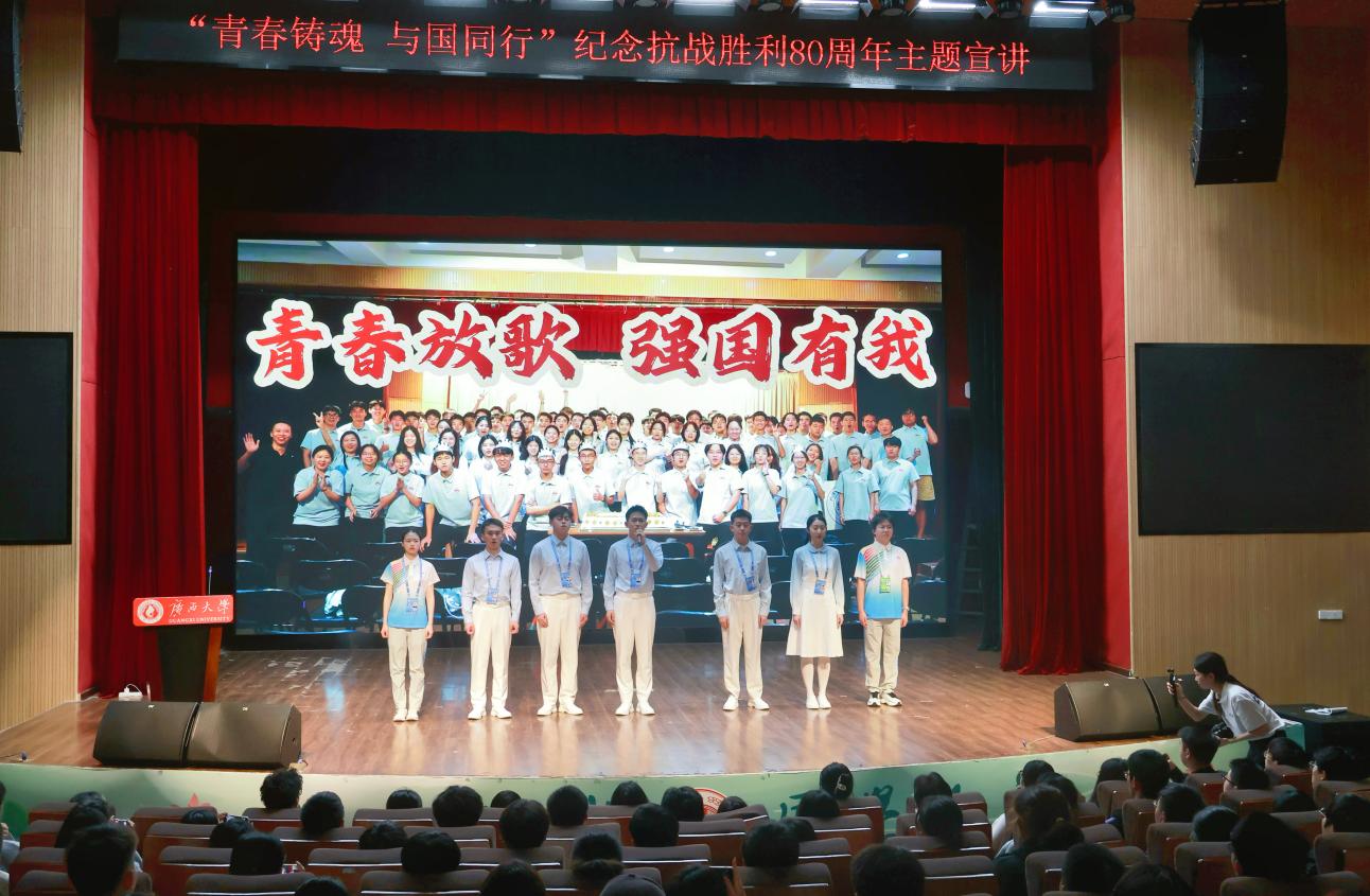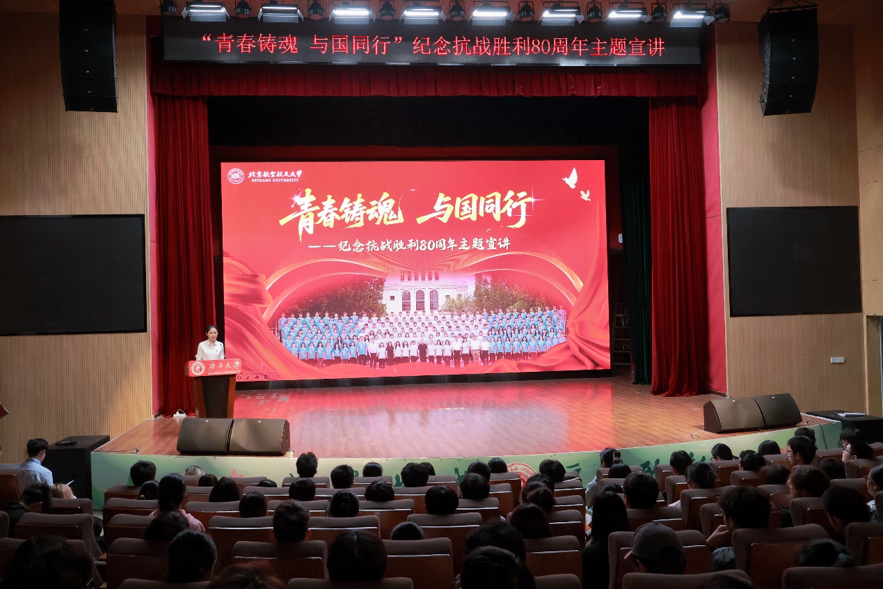 7名曾参与抗战胜利80周年国家级纪念活动的北航学生以“青春铸魂 与国同行”为主题,面向我校师生进行宣讲。主讲人结合自身参与纪念活动的经历,生动讲述了天安门广场合唱团的“百日淬炼”、幕后志愿服务的默默坚守、跨越时空的信仰传承等真实故事,以青年视角诠释爱国主义与时代担当,使抗战精神在鲜活叙事中深入人心。宣讲现场气氛热烈,精彩分享赢得阵阵掌声。