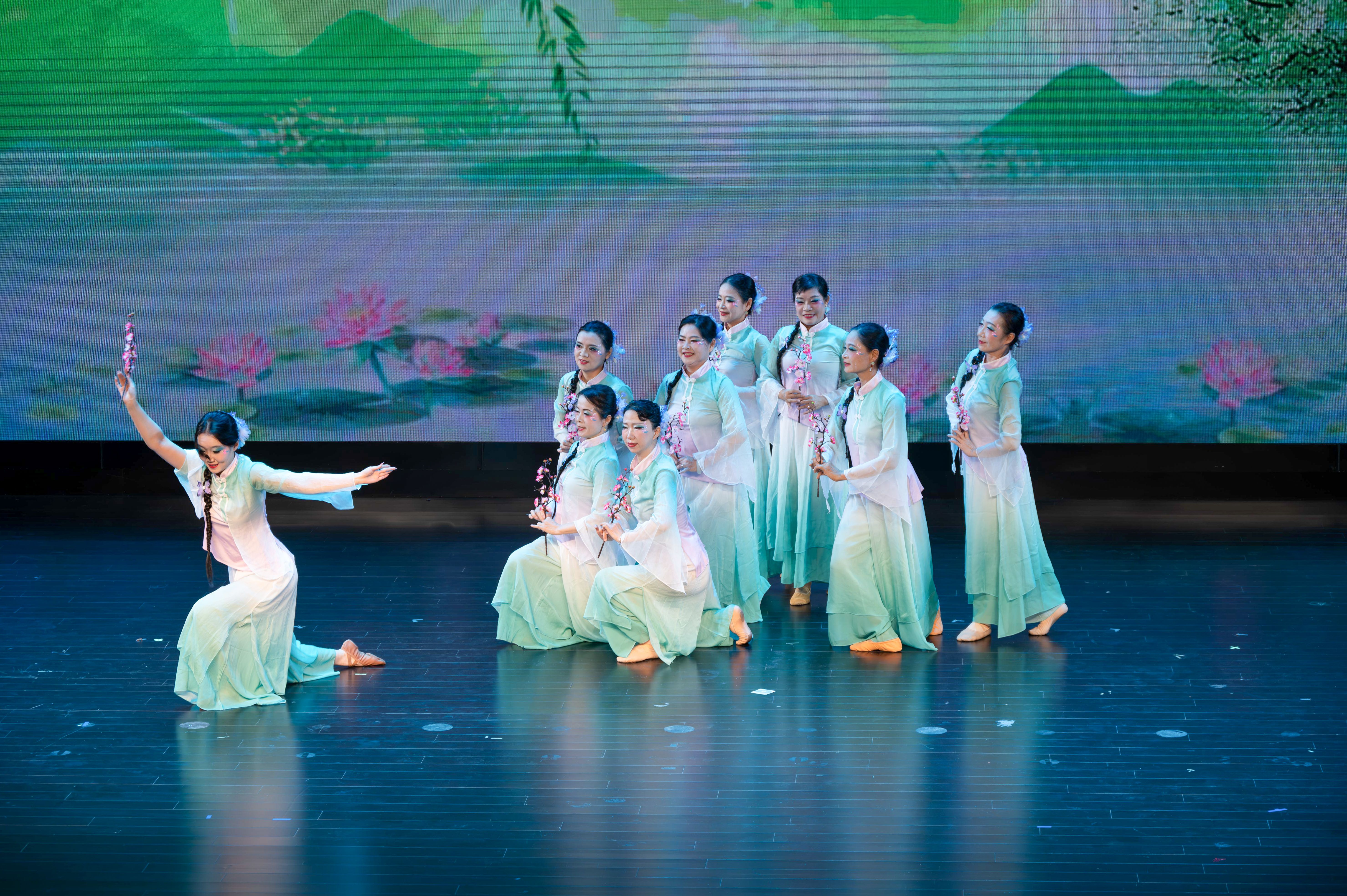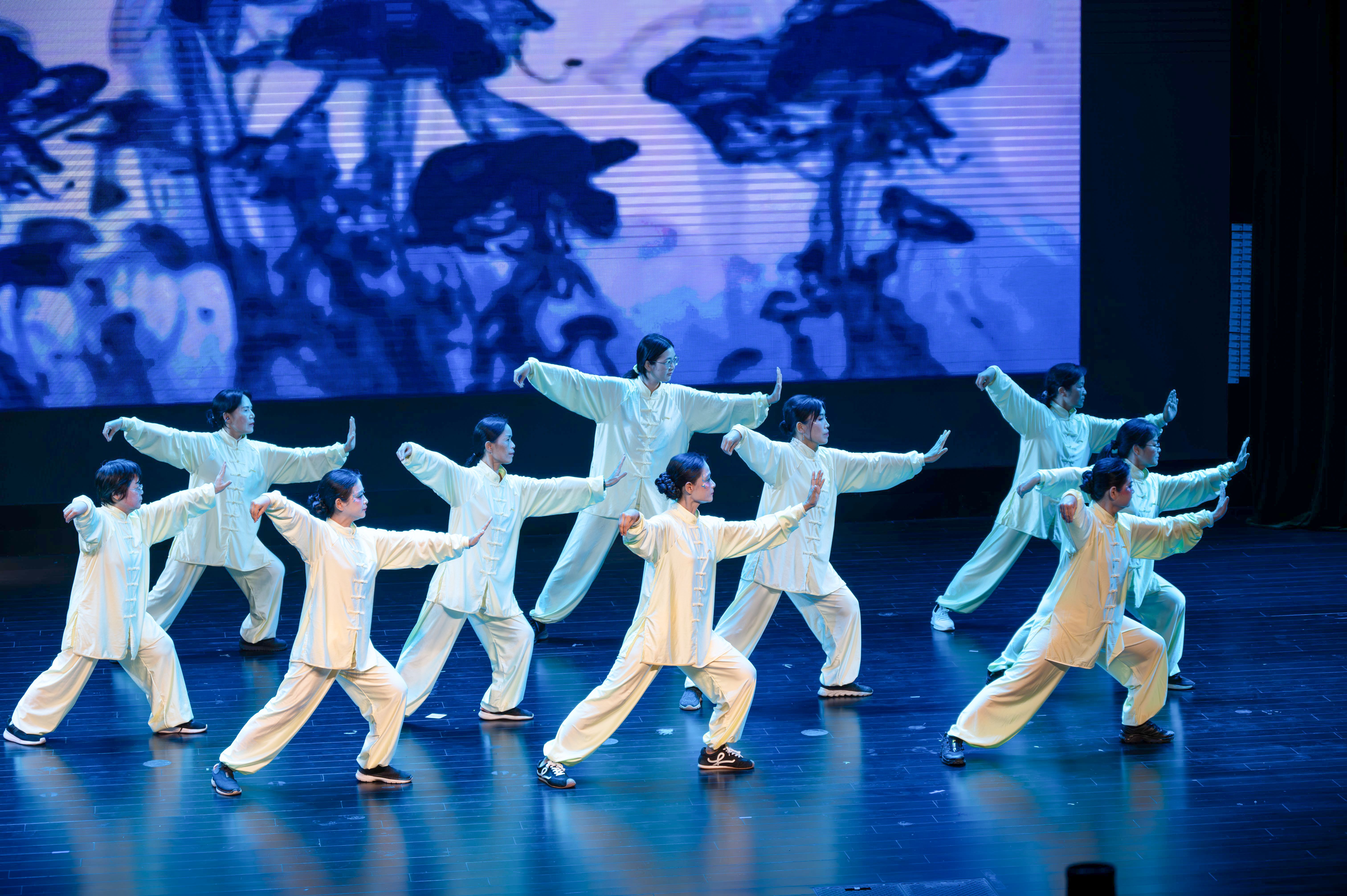 晚会在《我爱你中国》拉丁舞表演中拉开序幕,经典红歌的旋律与热情洋溢的拉丁舞步融合,瞬间点燃了现场气氛。瑜伽《不染》用优雅的肢体语言,以静制动,在动与静的结合中,达到身体、心灵与精神的和谐统一。中国舞《天浴》中舞者以最虔诚的姿态,对话天地、对话自己、坚守初心、勇担使命。《太极拳》的表演者们行云流水般的动作,展现了教职工繁忙工作之余修身养性、积极健康的精神风貌。中国舞班的《青花瓷》以瓷韵喻廉心,老年合唱团的《姑娘赶圩泉边过》以歌声颂团结,整场演出精彩纷呈,兼具艺术美感与思想内涵。