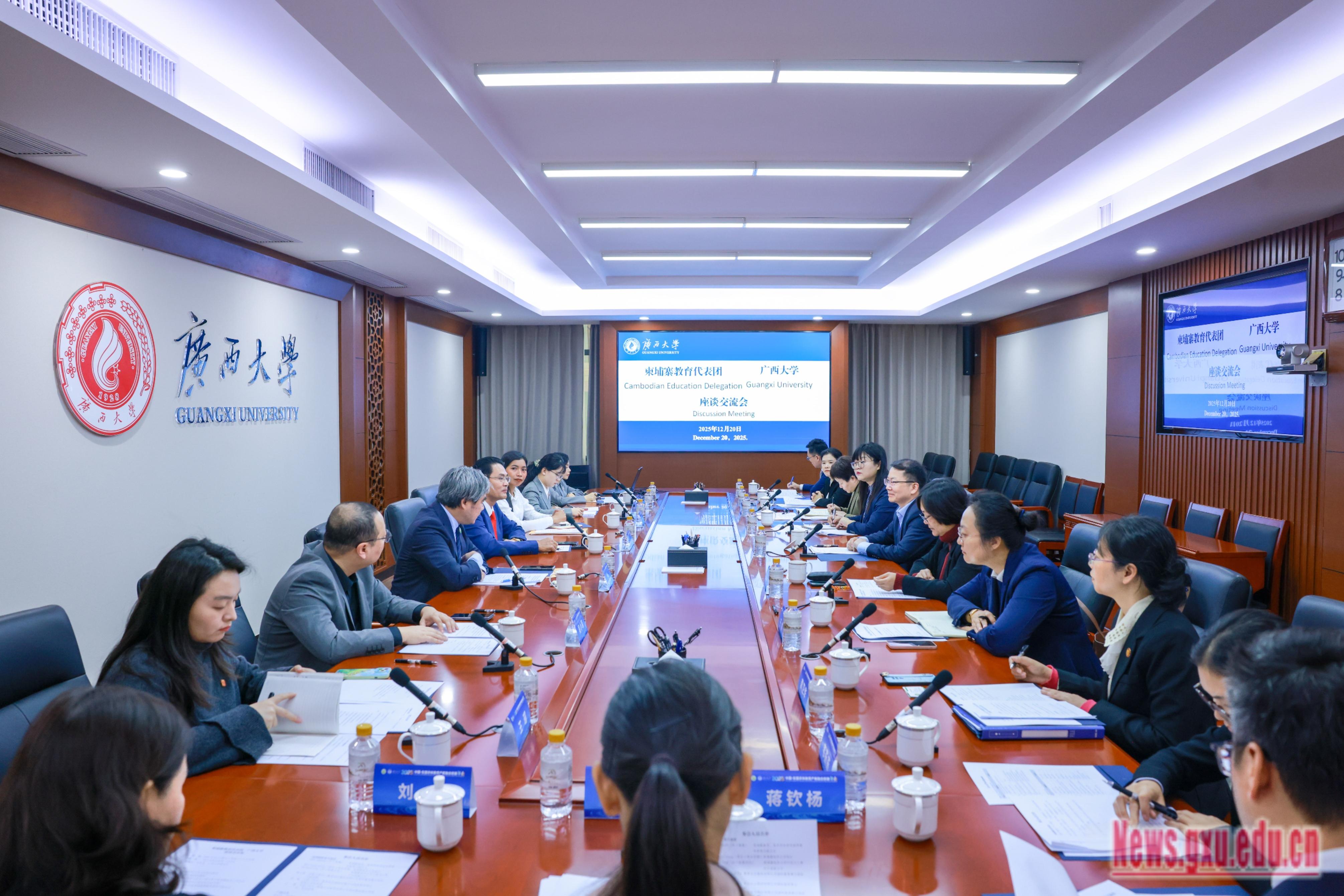 12月20日,由柬埔寨教育、青年和体育部高等教育管理司副主任Mr.SONG SOKSAN(宋·索桑)与柬埔寨桔井大学校长Ngy Laymithuna(恩吉·莱米苏纳)组成的教育代表团一行六人到校访问。校党委常委、副校长赵双良会见了代表团并主持座谈会。