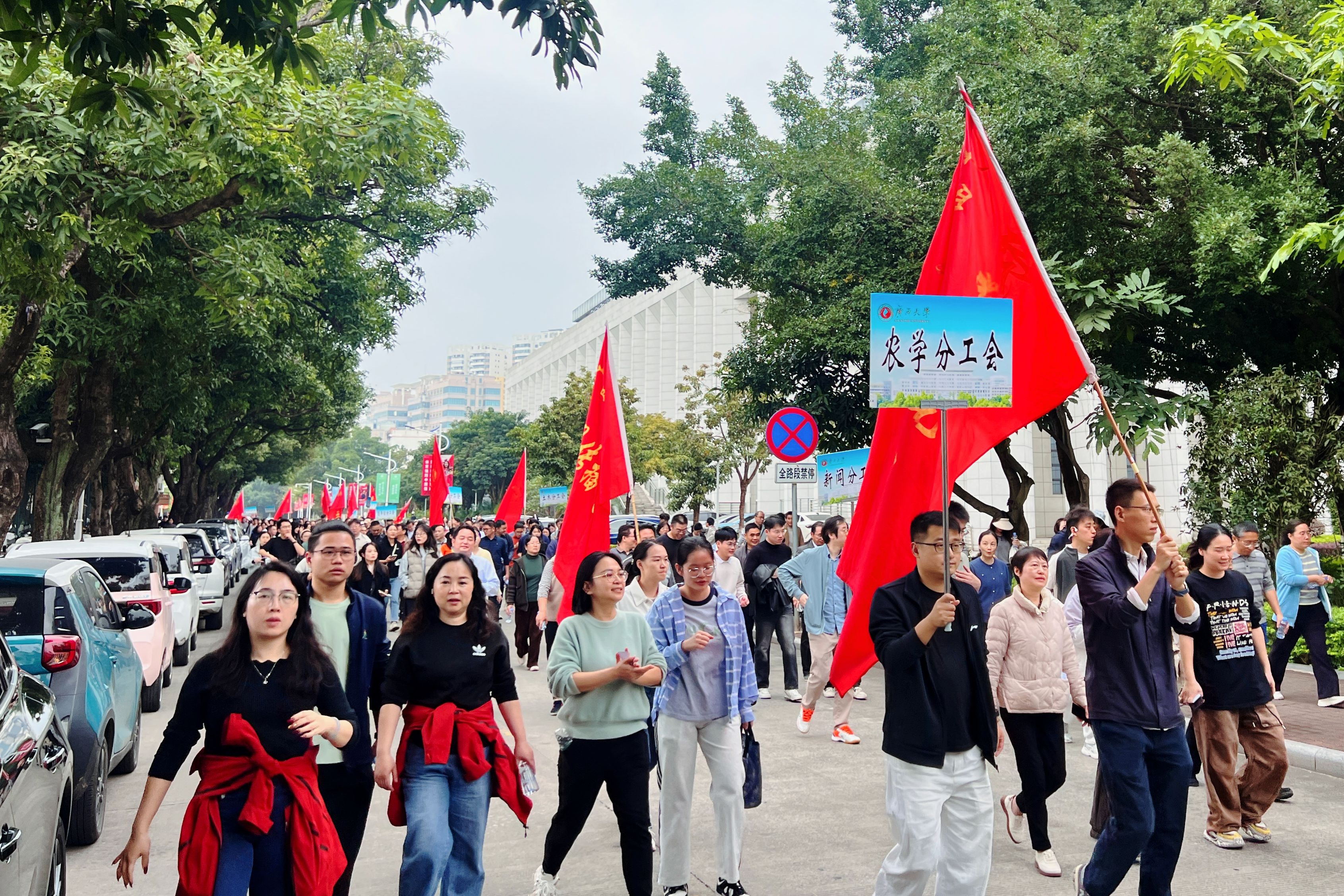 参加活动的教职工们在起点处集结完毕,精神抖擞,整装待发。随着一声号令,队伍有序出发,沿精心规划的路线前行。