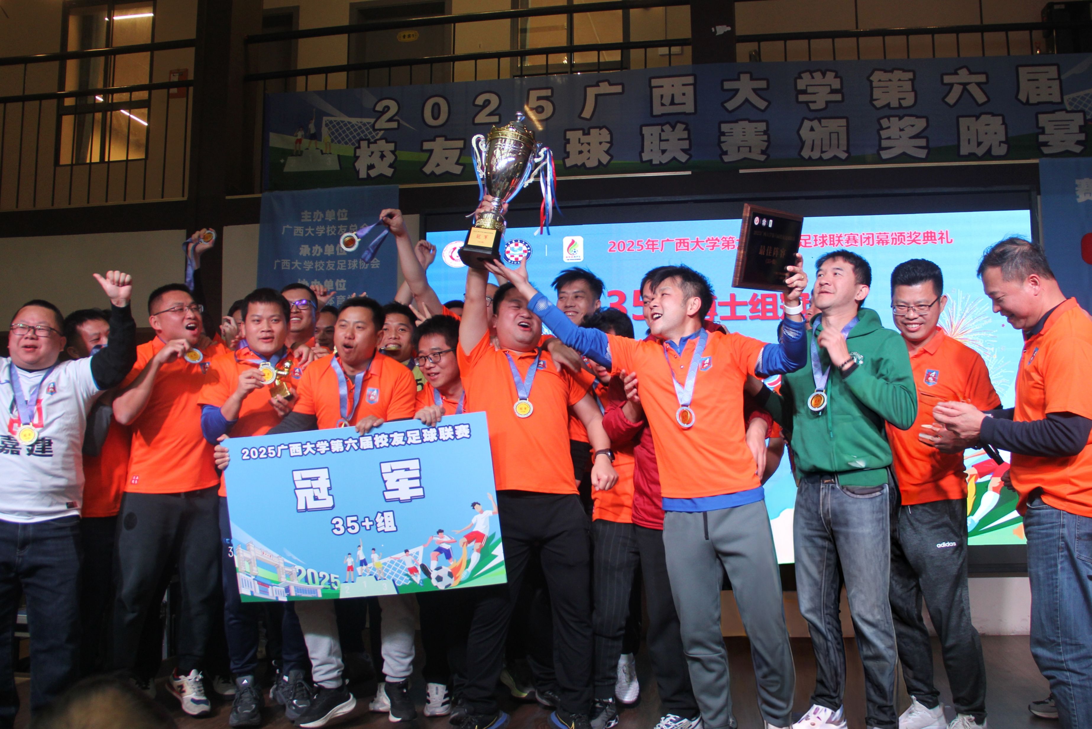 颁奖典礼上,各项荣誉逐一揭晓。土建学院队、电气学院队、农学院队分获35+组、45+组、52+组冠军。沈春亮,聂抗,苏兆成、张朝敢分获三个年龄组别最佳射手称号;韦凯、冯朝明、方志恒等获评各组别最佳守门员;滕飞、吴泰君、李铁获评最佳教练。赛事还颁发了公平竞赛奖、最佳阵容及竞赛优胜奖、优秀通讯员及特别贡献奖等多个奖项。