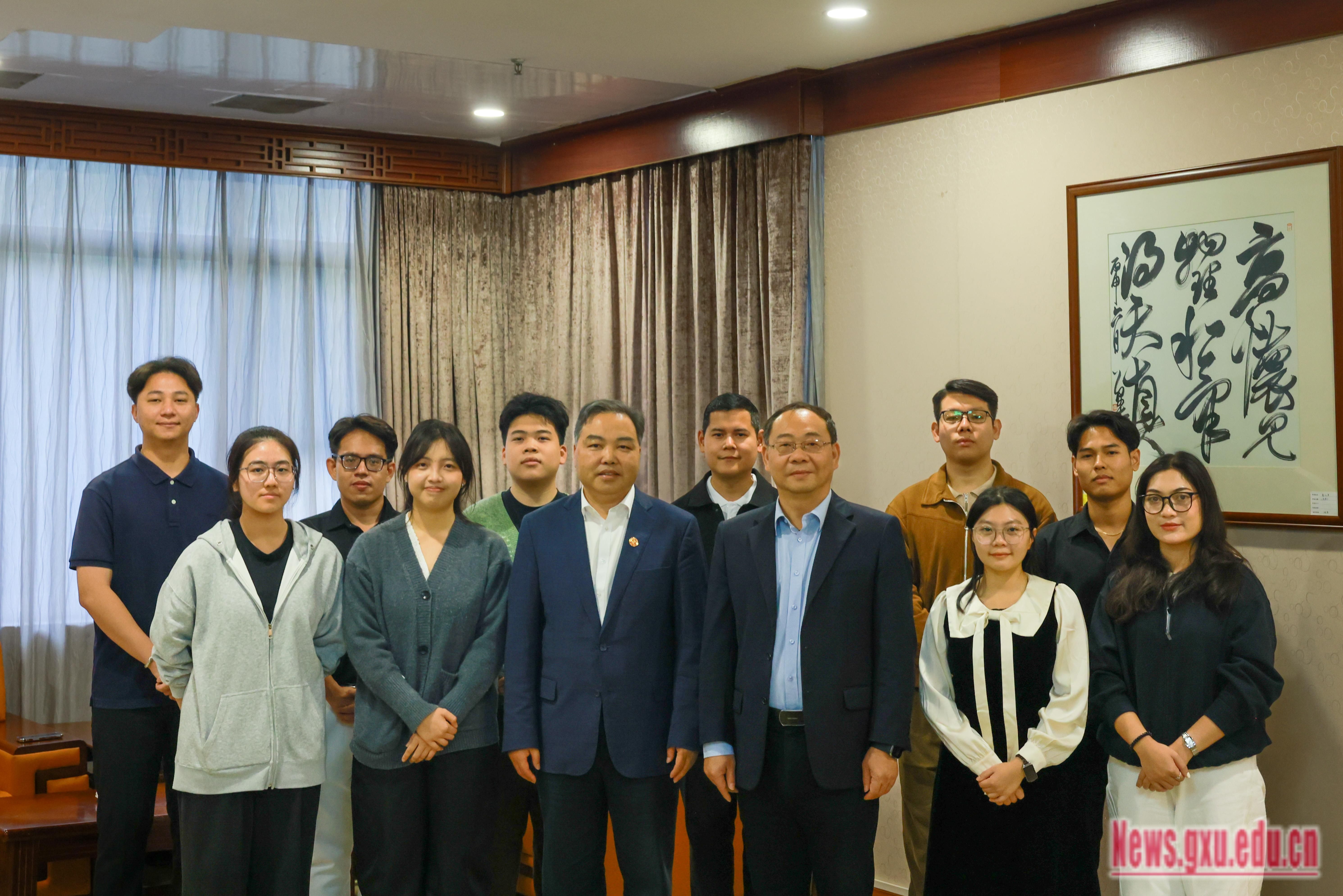 交流过程中,肖建庄亲切地与留学生们一一交谈,了解同学们在校学习生活情况,向他们表达学校的关怀与新年的美好祝福,鼓励留学生们在新年来临之际深入了解中国元旦新年习俗,感受节日氛围与文化魅力。他与同学们分享了自身的留学经历,勉励大家珍惜留学时光,积极探索科学奥秘,不断追求学业进步,积极融入广西大学大家庭,并希望留学生们将来无论是留校深造,还是归国建设家乡,都牢记母校的关爱和嘱托,做中外友谊使者和文化交流桥梁。