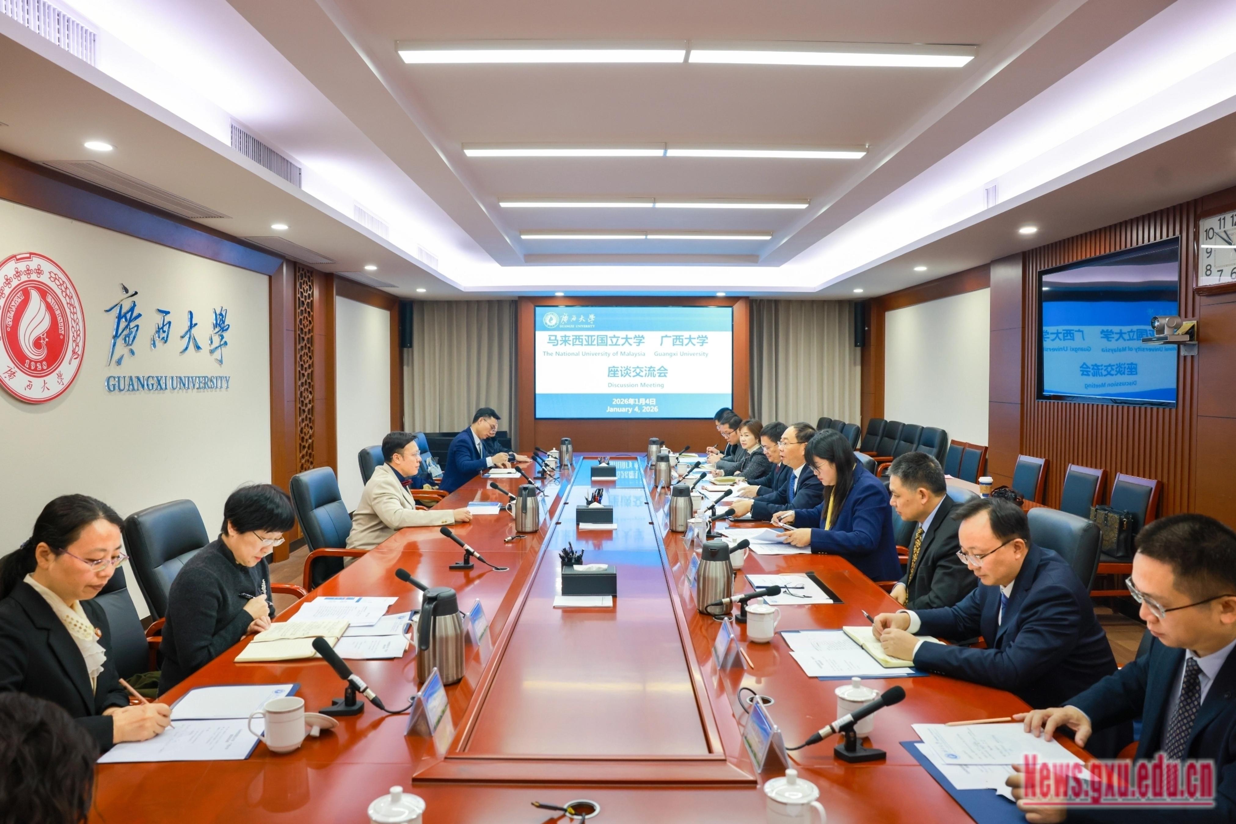 于文进对代表团的到访表示欢迎。他表示,中马两国友谊深厚,广西作为中国面向东盟开放的前沿窗口,在产业对接、教育文旅等领域与马来西亚合作成果丰硕。深化与马来西亚国立大学的合作,既是落实中国与东盟教育合作战略的重要举措,也是服务国家对外开放大局、推动区域共同发展的必然要求。作为扎根广西、立足东盟的“双一流”高校,广西大学期待与马来西亚国立大学进一步凝聚共识,重点推进师生互访、联合培养、科研合作与国际会议共办,尤其在人工智能、半导体、绿色能源、海洋科学等优势领域,通过打造跨学科合作平台,探索多元化的中外合作办学模式,开展双向学生研学等多种形式的交流,使合作成果惠及两校师生。