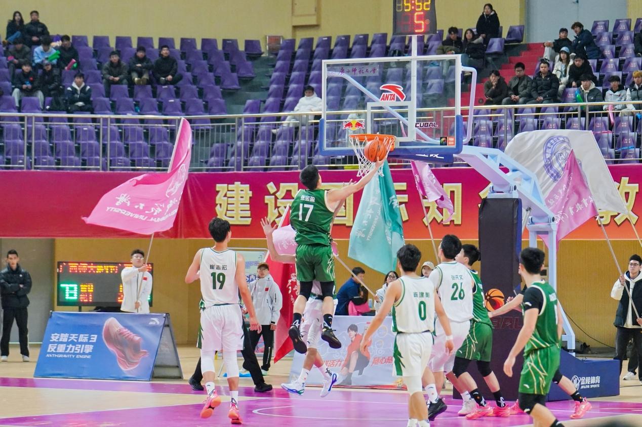 在2025年12月30日决赛首回合比赛中,我校男篮在西校园综合体育馆主场迎战广西师大男篮,凭借全场稳定出色的发挥,最终以93:76击败对手。此场比赛吸引了全校四千余名师生到场观战,现场气氛热烈,助威声、欢呼声此伏彼起。赛前及节间休息时,精彩的啦啦操表演、舞龙舞狮助兴以及互动抽奖环节,一次次点燃全场热情,充分展现了我校学子团结向上的精神风貌。