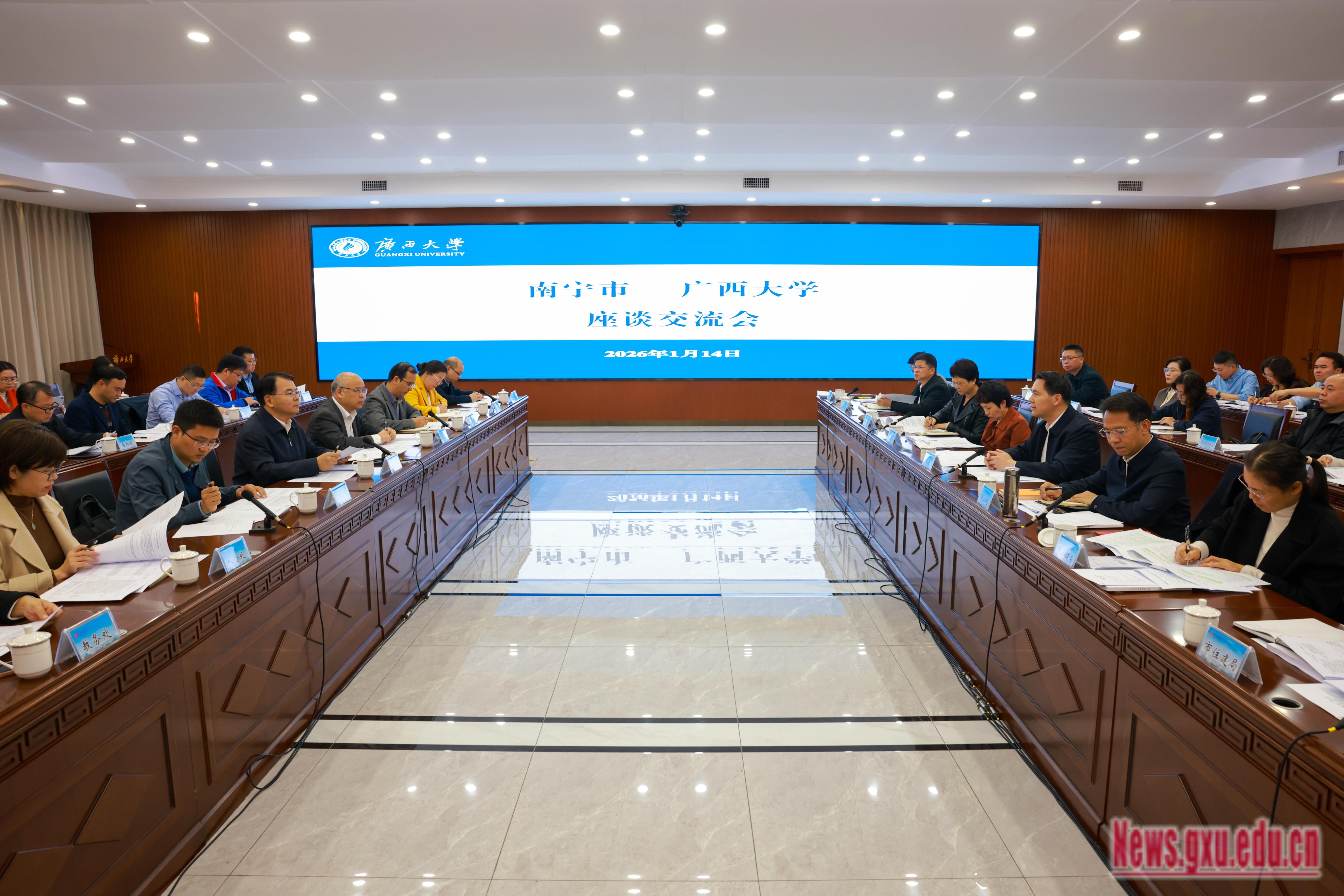 座谈会上,双方围绕新校区规划建设、附属医院共建、人才住房保障、科技成果转化机制、中国—东盟人工智能与数据创新中心共建、特色畜禽产业开发、智能建造与绿色建材、低空经济产业合作、基础教育与职业教育支持等议题进行了交流研讨。