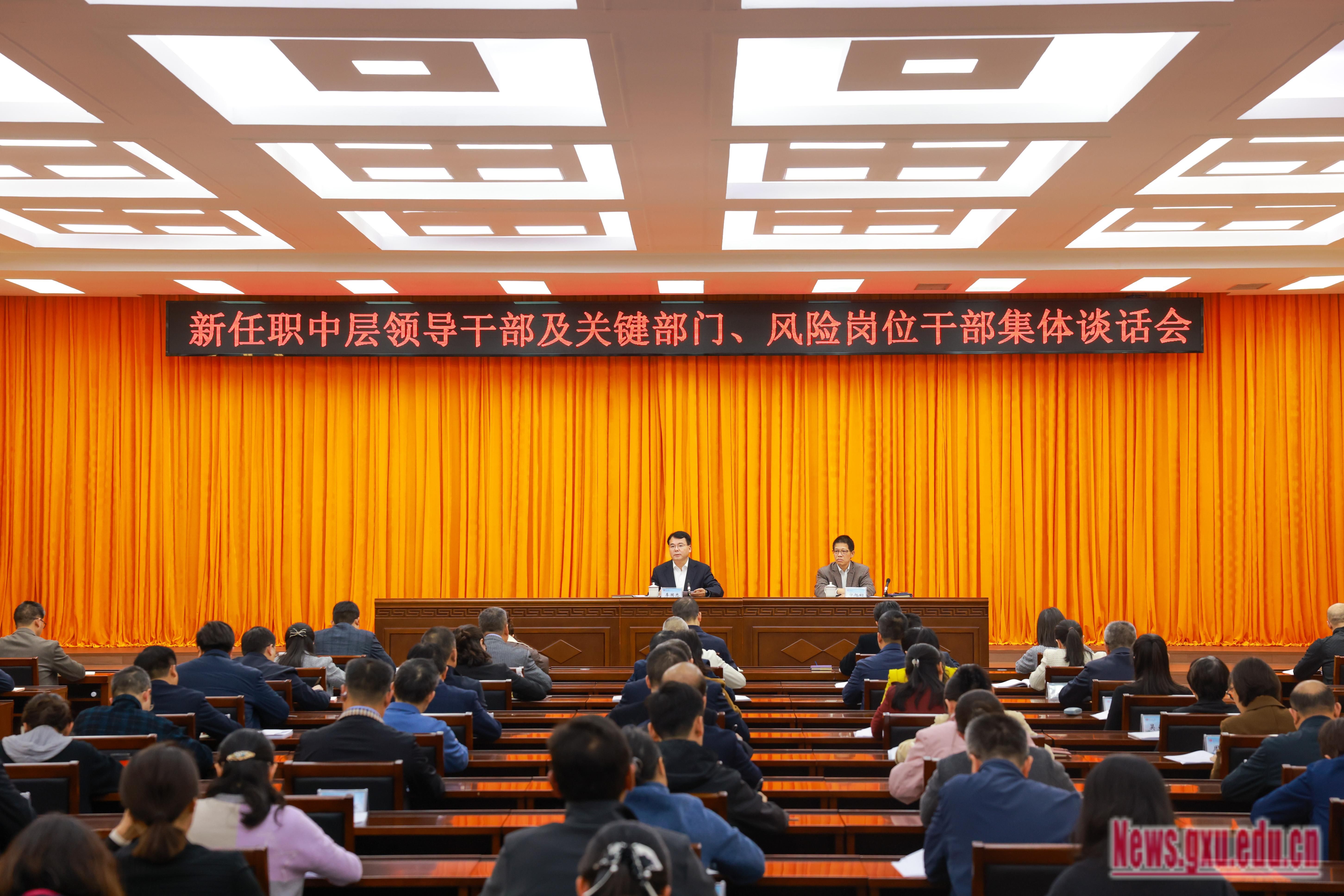 李国忠对标新时代好干部标准,结合学校干部队伍存在的问题和当前面临的新形势新任务,与新任职中层领导干部及关键部门、风险岗位干部开展深入交流,并提出明确要求。他强调,要旗帜鲜明讲政治,不断提高政治判断力、政治领悟力、政治执行力,深化理论武装、筑牢思想根基,坚决摒弃形式主义、官僚主义,不折不扣推动学校各项决策部署落地见效;要切实履职尽责,主动担当作为,锚定学校发展大局,大力破除“等靠要”思想,克服“躺平”思想、惰性心态,主动迎接挑战,善于攻坚克难;要对照教育、科技、人才一体化要求及建设教育强国、教育强区的目标,提升综合素质能力和专业化水平,克服“本领恐慌”,创造一流业绩;要清正廉洁、守住底线,永葆忠诚干净担当本色,常怀敬畏之心,始终做到依法用权、依规办事,自觉主动接受监督,认真履行“一岗双责”,共同营造和守护风清气正的政治生态和干事创业环境,学校将坚决推动干部能上能下、能高能低、能进能出,为敢担当、善作为的干部提供广阔舞台。