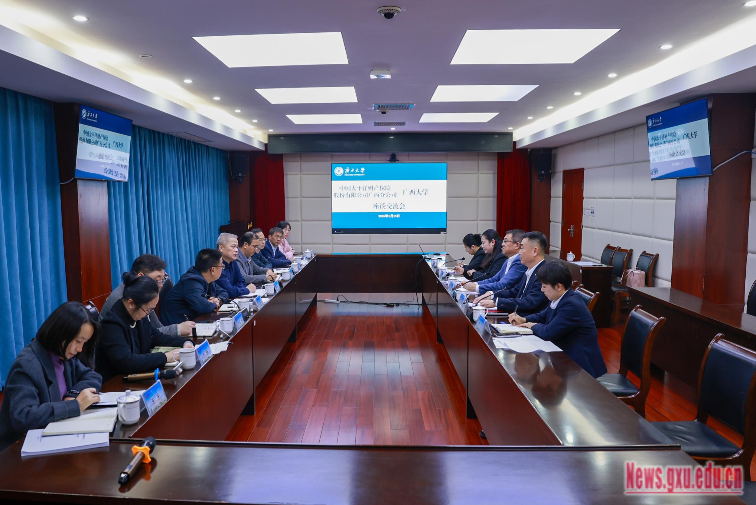 太平洋产险广西分公司相关部门负责同志,我校党办校办、学工部(处)、保卫处、科研院、离退休工作处、资产经营公司负责同志参加座谈。