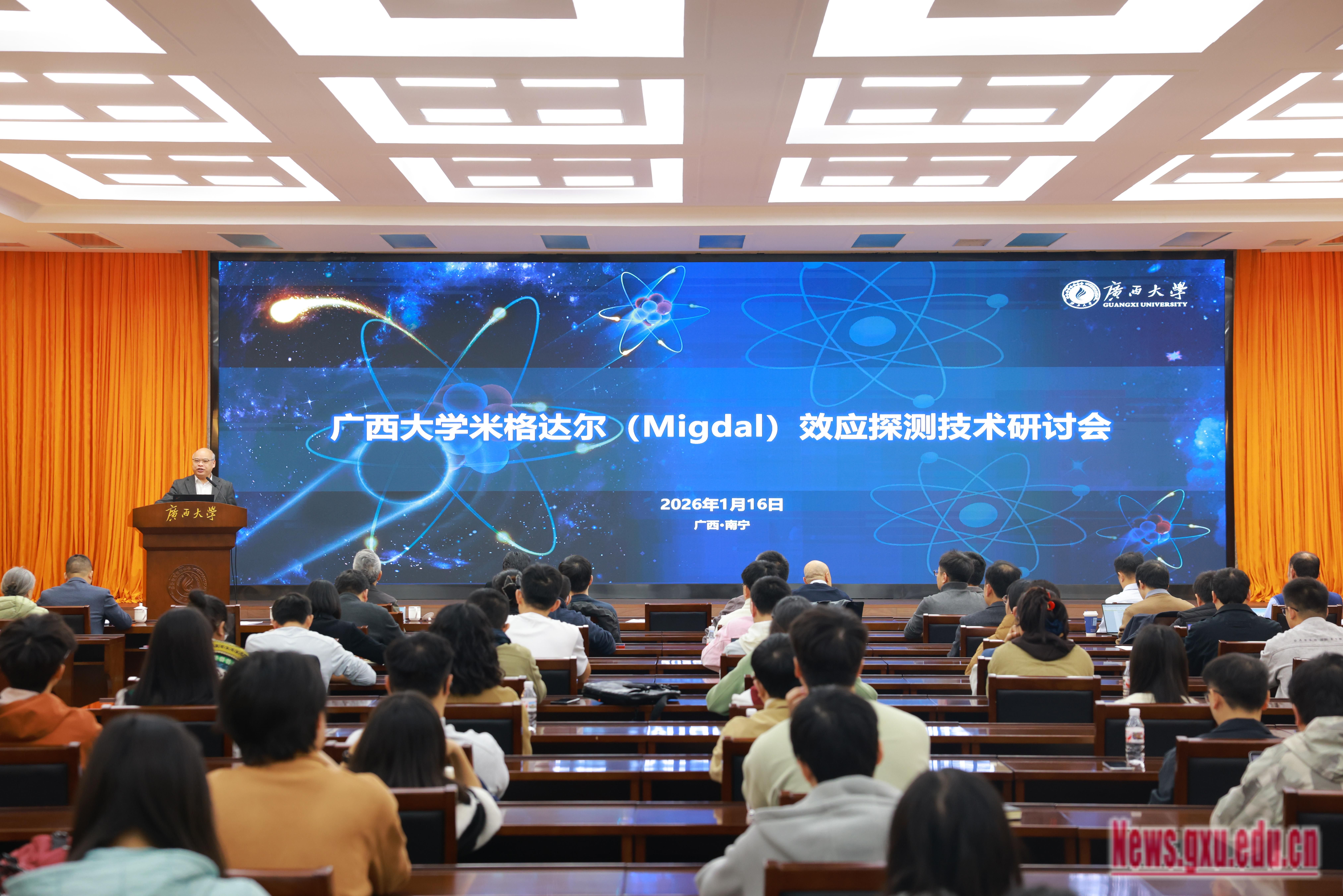 近日,我国科研团队首次直接观测到米格达尔效应的成果荣登国际顶级期刊Nature,引发全球物理学界广泛关注。作为该研究核心参与单位,我校于1月16日举办米格达尔(Migdal)效应探测技术研讨会,对探测器研制经验进行总结,并探讨后续研发工作。中国科学院大学副校长郑阳恒出席会议并作报告,我校党委常委、副校长梁恩维出席会议并致辞。
