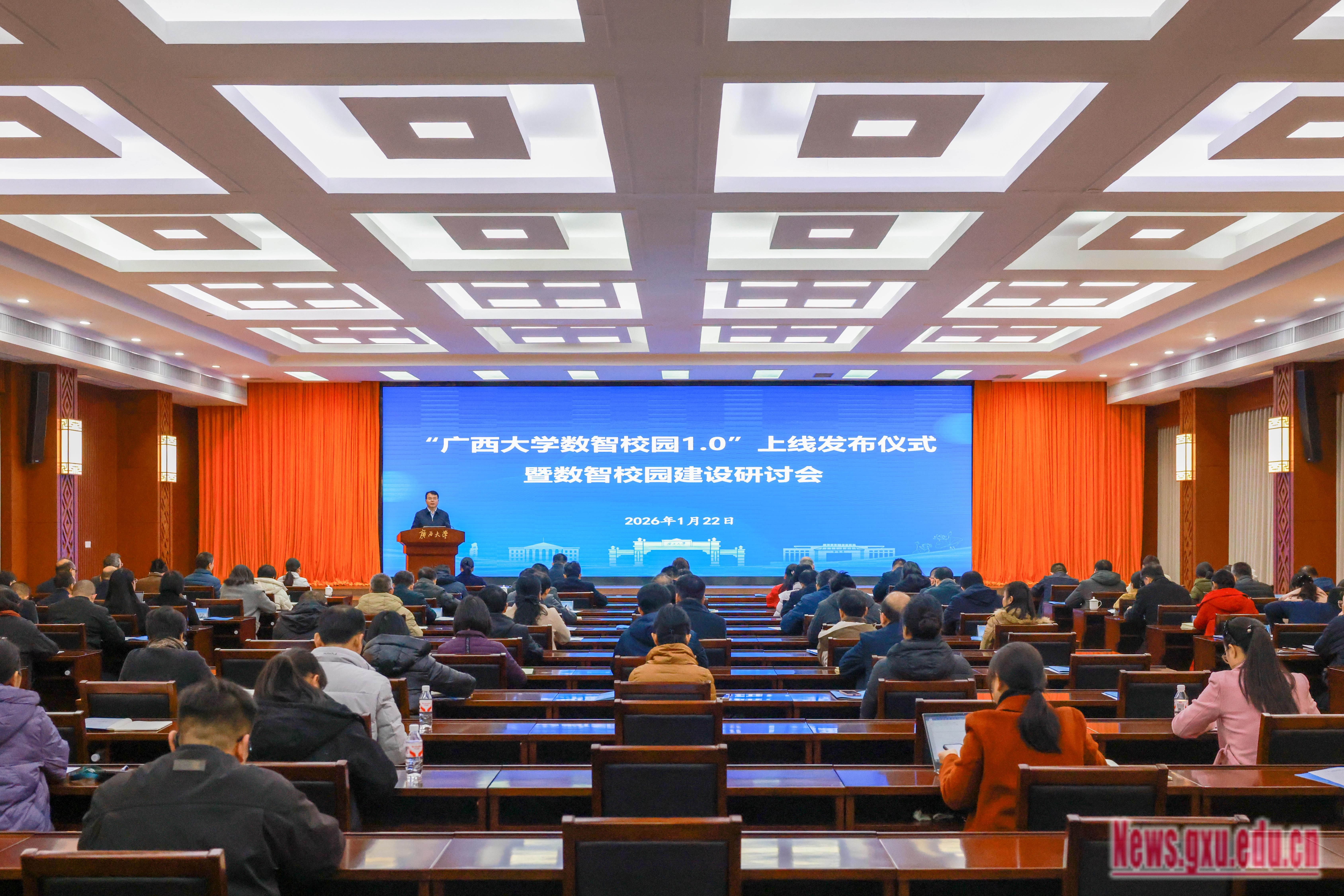 1月22日,我校召开“广西大学数智校园1.0”上线发布仪式暨数智校园建设研讨会。自治区教育厅党组成员、副厅长傅源方,校党委书记李国忠,校党委常委、副校长梁恩维出席会议。