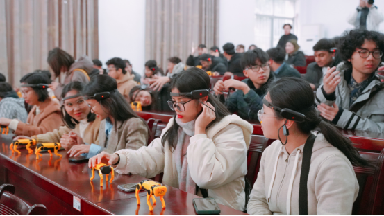 在智能车间,留学生们近距离观摩了高效与精密的现代化智能制造生产线;在脑机接口技术体验区,留学生们亲身体验了如何通过“意念”控制机械狗行走,对人工智能与人类认知的融合发出了阵阵惊叹;在3D打印工作坊,留学生们体验了3D打印技术,亲手参与制作并带走了一份独特的科技纪念品;在自主编程挑战环节,留学生们积极尝试编写代码,成功实现了声控小车的现场操控。一系列互动性强、科技感足的活动设计,让留学生们在动手实践中深化了对人工智能、先进制造等前沿领域的认知。