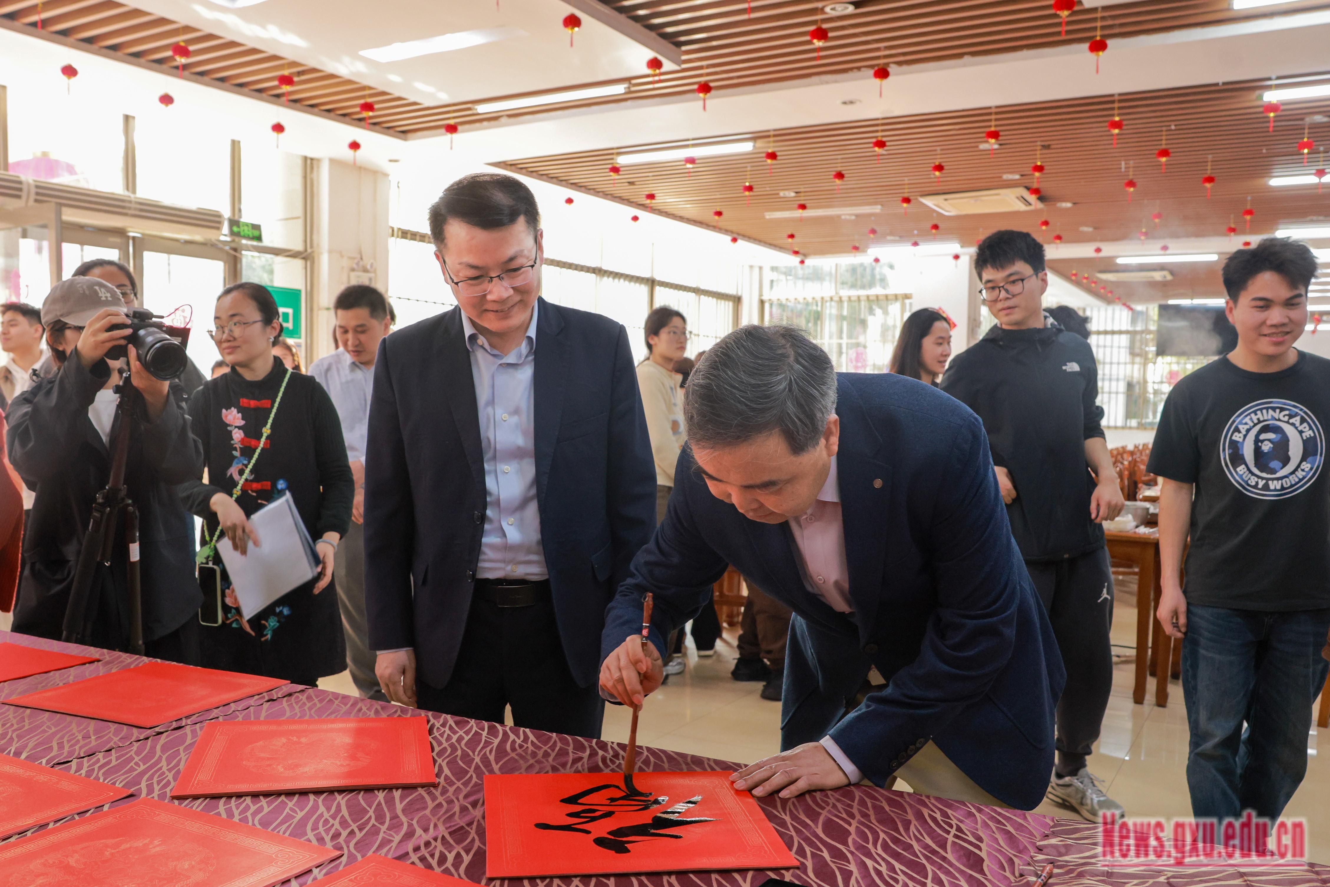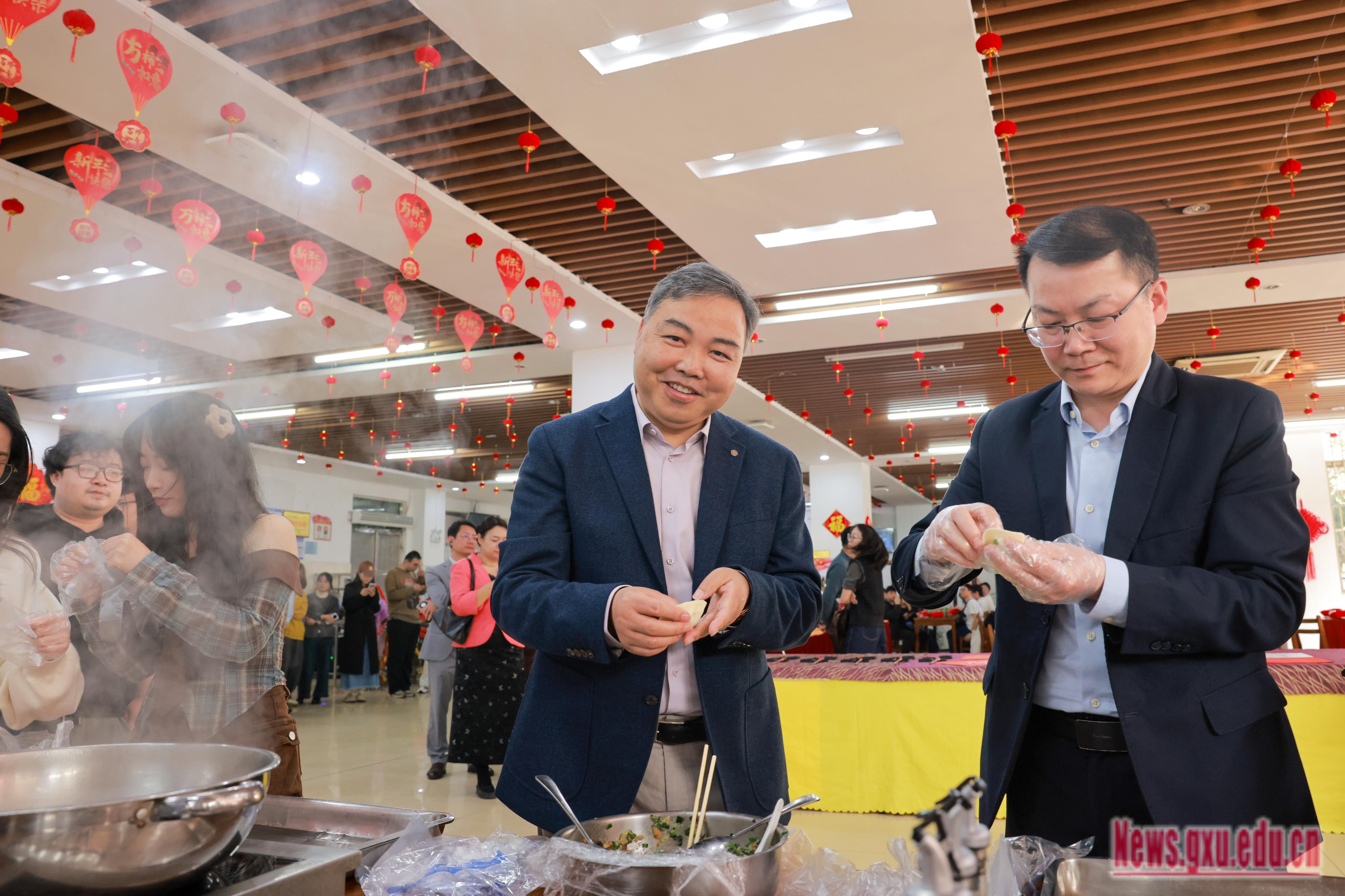 2月16日农历除夕,校党委副书记、校长肖建庄,校党委常委、副校长赵双良来到萃苑餐厅,与寒假留校学生一同写福字、剪窗花、包饺子、吃年夜饭,喜迎马年新春佳节。