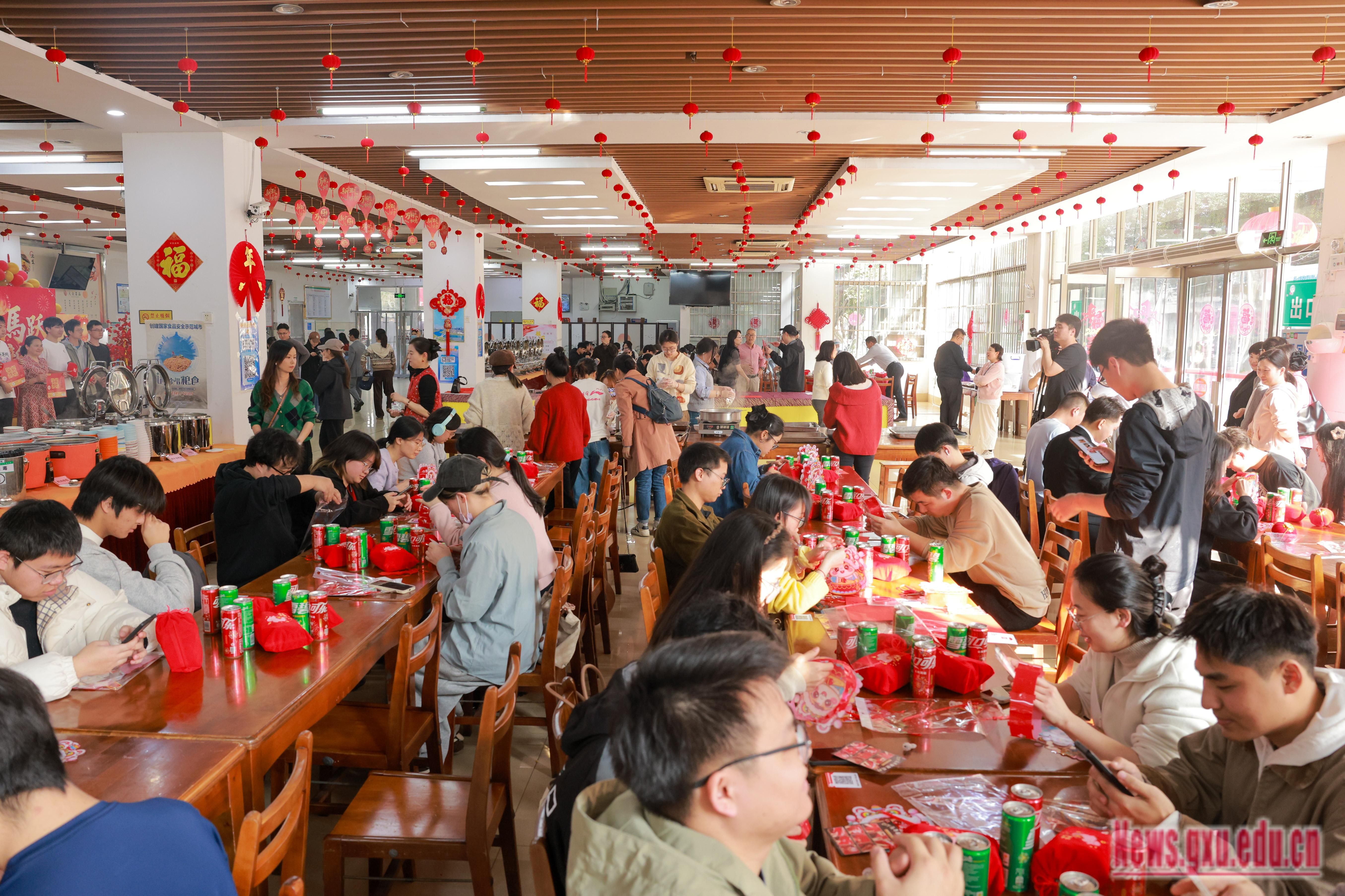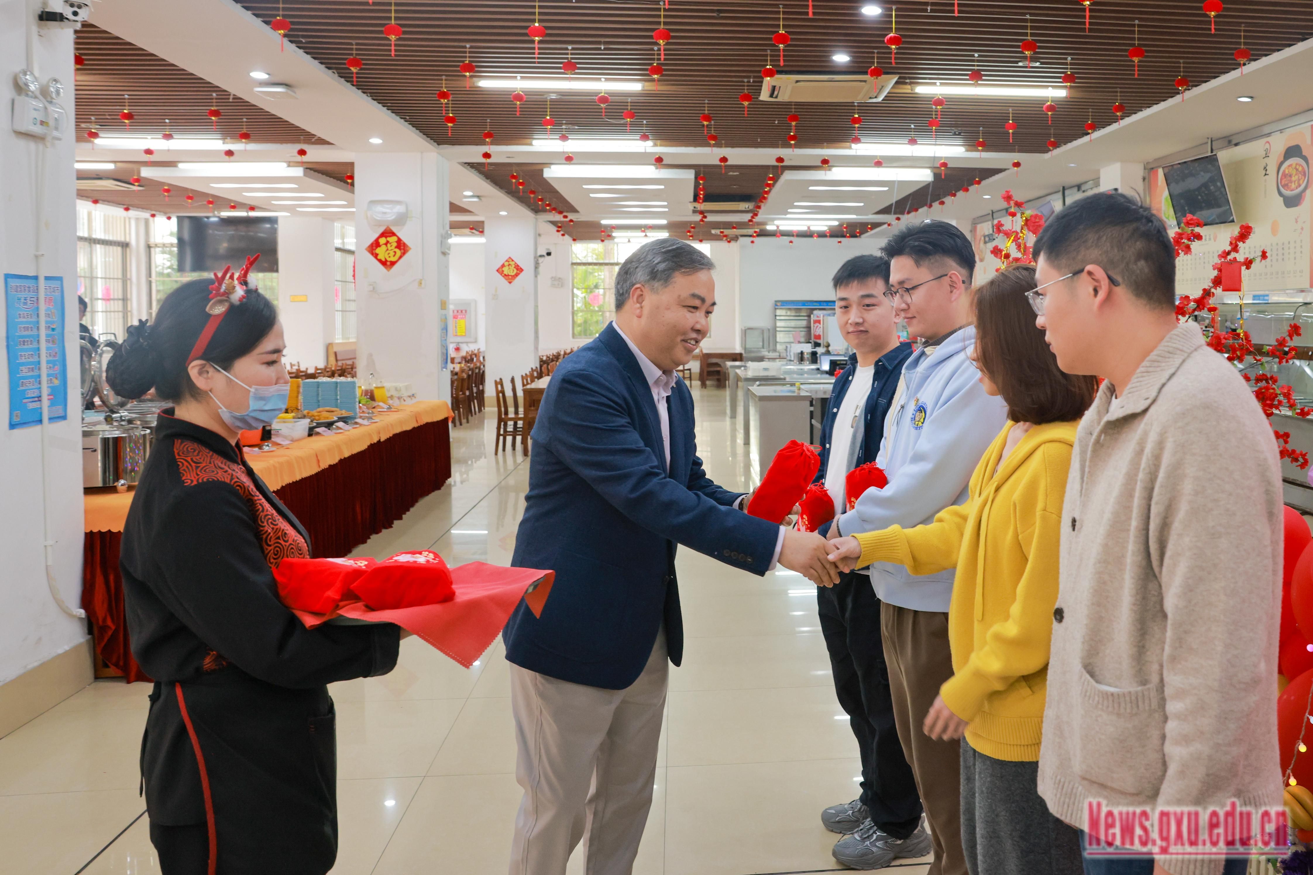 校领导与留校学生共度除夕、同吃年夜饭是我校延续多年的传统。今年我校共有160余名学生选择留校过年,学校高度重视留校学生服务保障工作,专门制定工作方案,相关部门与学院通力配合,全力做好学习科研、餐饮、安保等各项安排,确保同学们在校如在家,暖心过年。