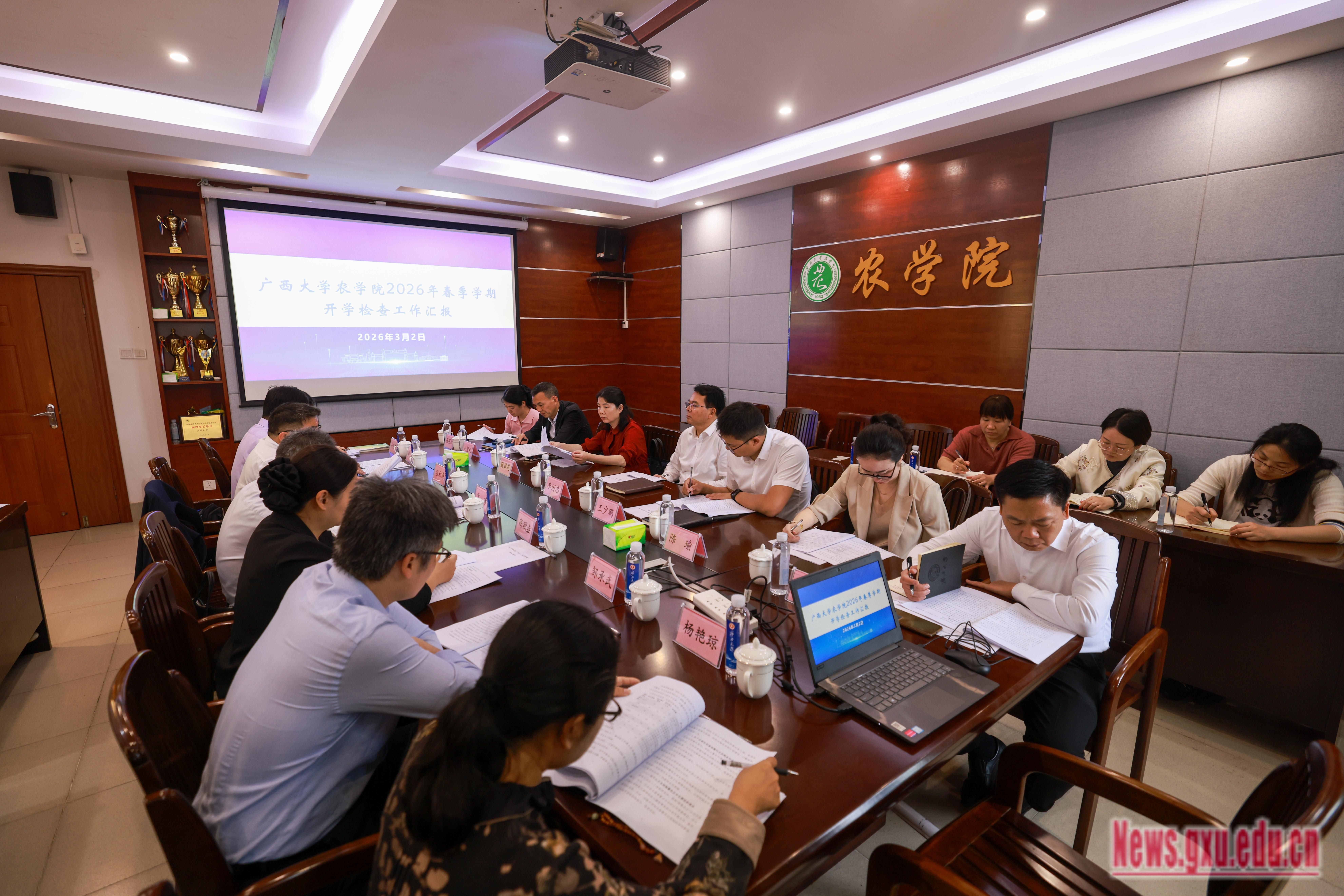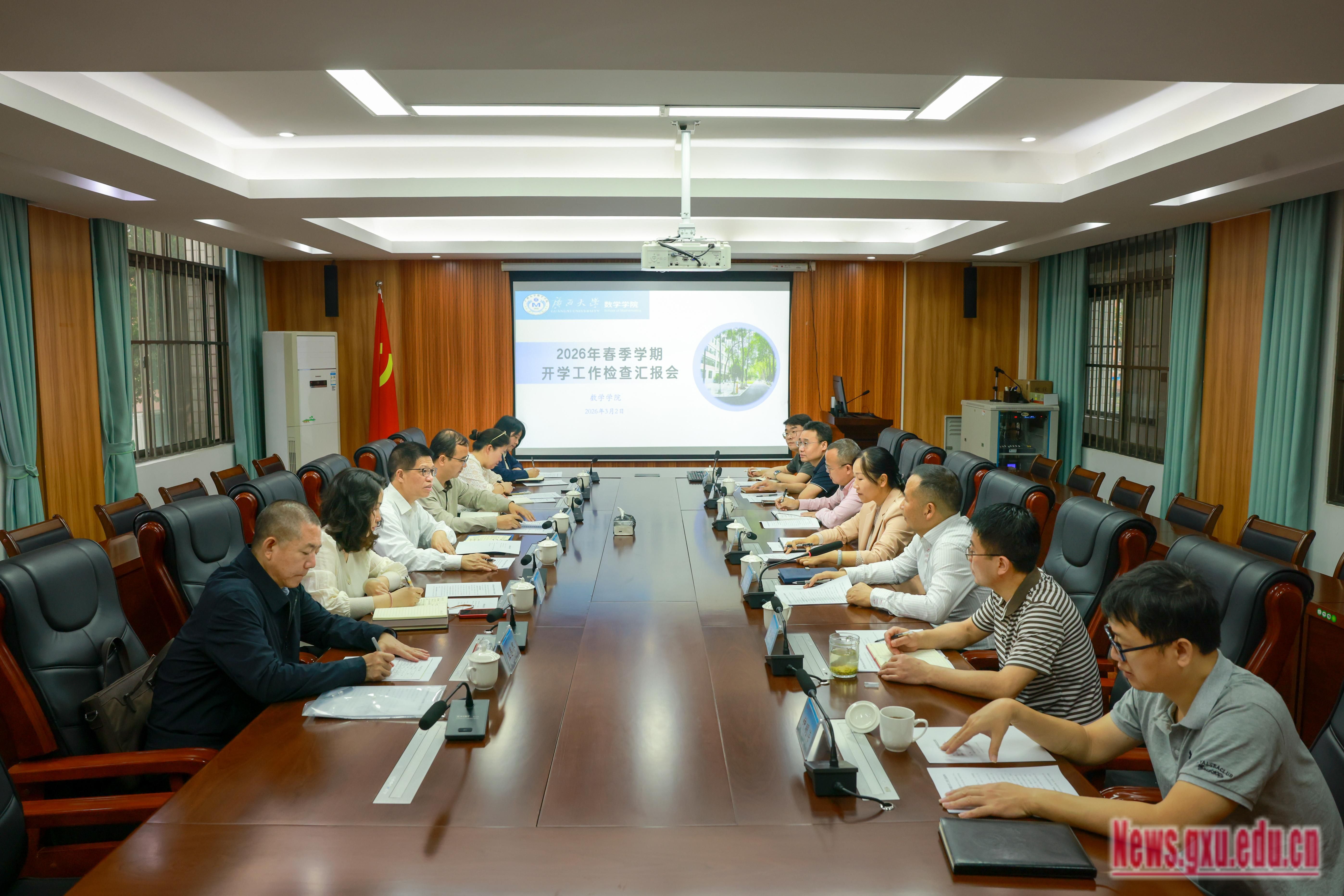 在上午的教学检查工作中,李国忠指出,当前学校正处于“双一流”建设和“十五五”规划谋篇布局的关键时期,机遇与挑战并存。他强调,要牢牢把握世界一流学科扩容和广西实验室挂牌等重大契机,快马加鞭推动学科内涵式发展。要坚持党建引领,强化教师队伍建设和学生思想政治工作,确保学院发展稳中有进。要在人才引育上破局,拓宽引才渠道,精准引进高水平领军人才,激发队伍整体活力,带动整体科研实力提升。要聚焦科研方向,既要产出高水平论文,也要注重服务产业需求,推动“接地气”的标志性成果落地转化。要加强系统谋划,整合校内相关学科资源,依托实验室平台推进协同创新和开放发展,力争在新一轮建设中取得显著突破。