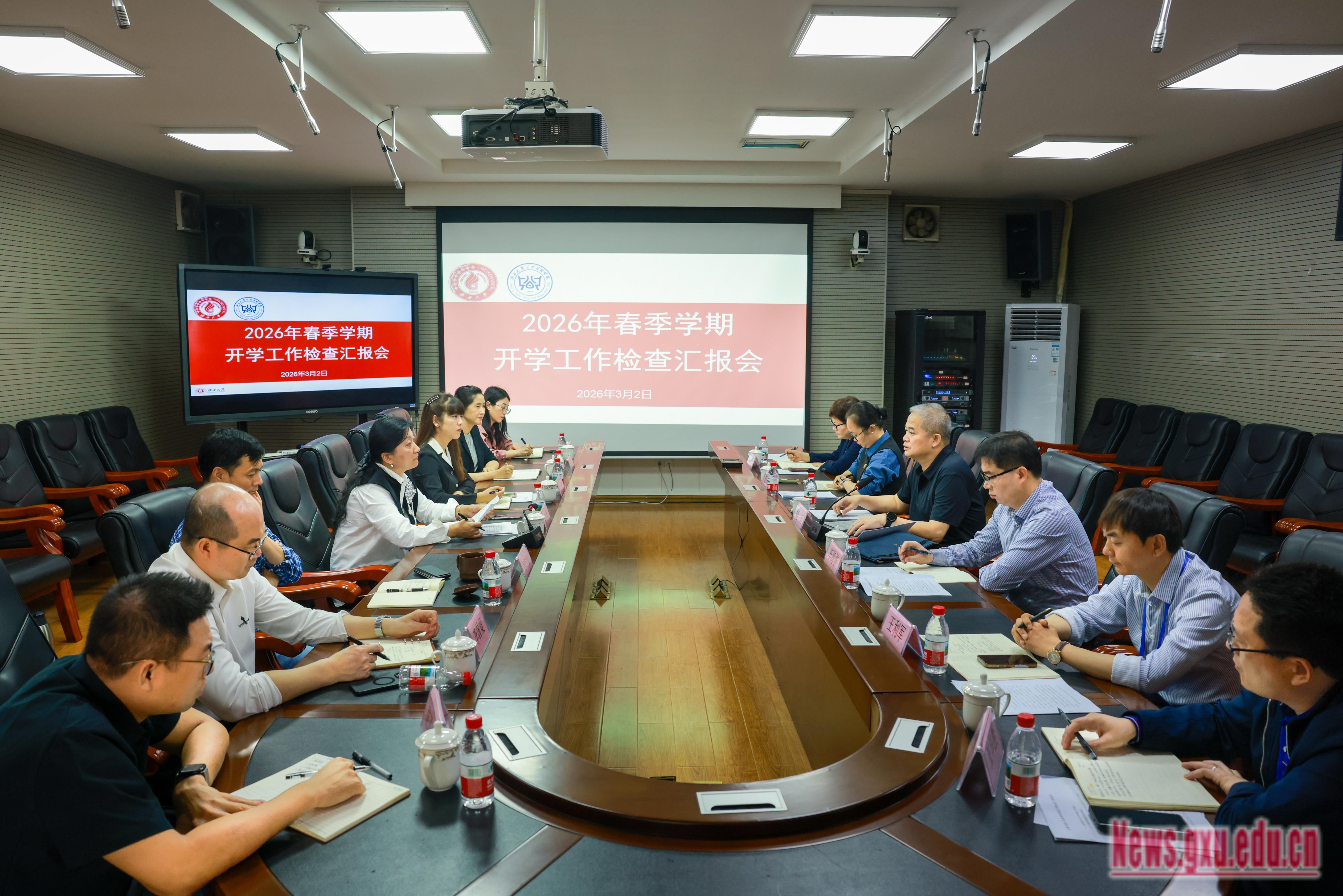 3月2日,校党委书记李国忠,校党委副书记、校长肖建庄带队开展2026年春季学期开学工作检查,通过实地走访、座谈交流、随堂听课等形式,全面了解新学期教学运行、学科建设、校园安全等情况,并对相关工作提出明确要求。校党委副书记宁旭初,校党委常委、副校长刘向、梁恩维、于文进、赵双良、王祥高参加相关检查工作。