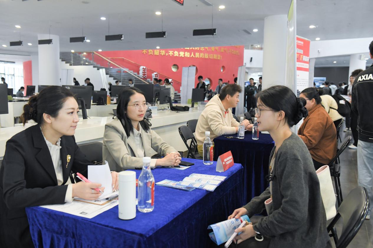 招聘会现场气氛热烈、秩序井然。到场毕业生就岗位职责、薪酬标准、职业发展规划等事宜,与企业招聘工作人员沟通了解;企业招聘人员向毕业生介绍企业概况、岗位任职条件及招聘计划,浏览毕业生简历,并通过现场交流完成初步筛选工作。部分毕业生与用人单位达成初步意向。