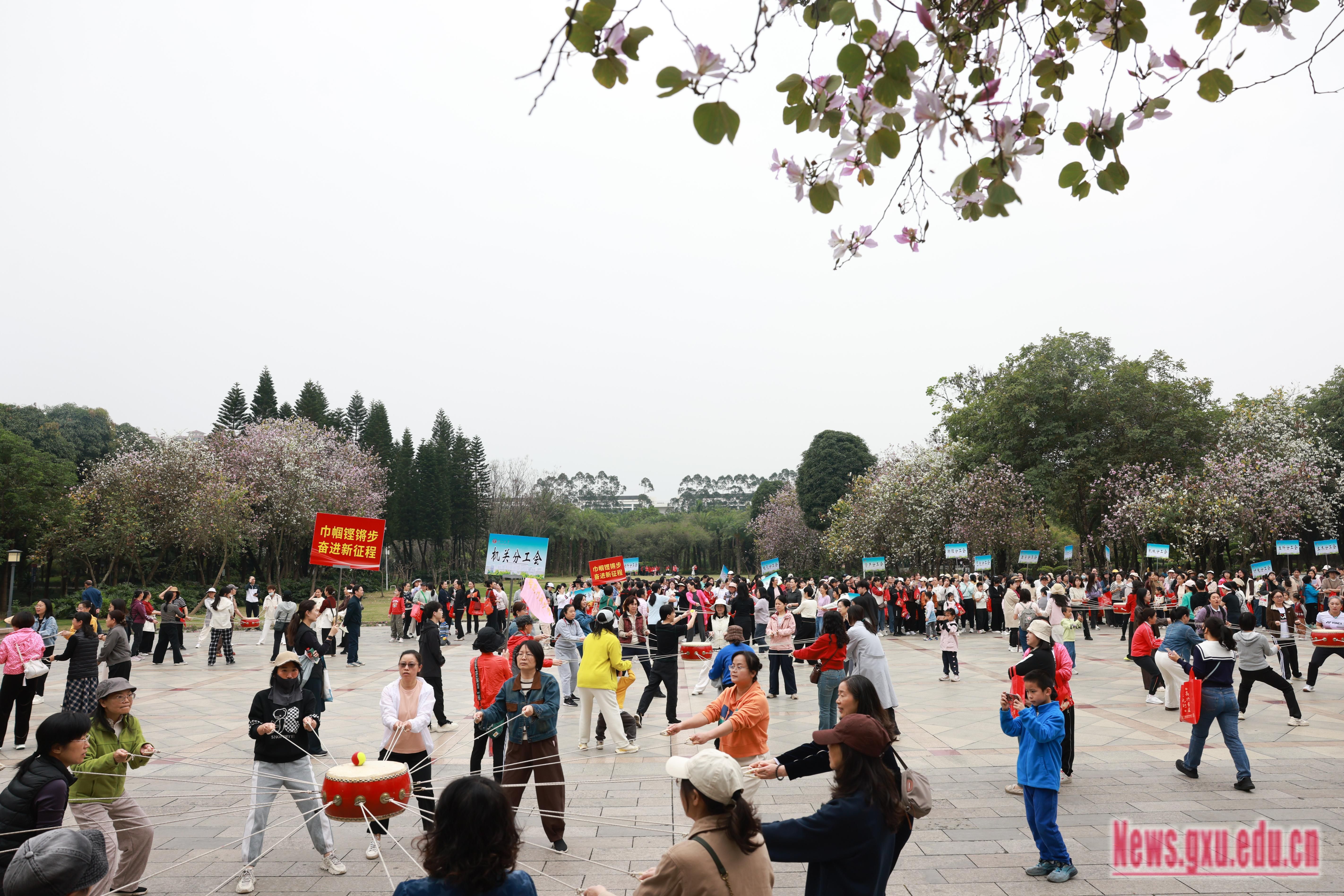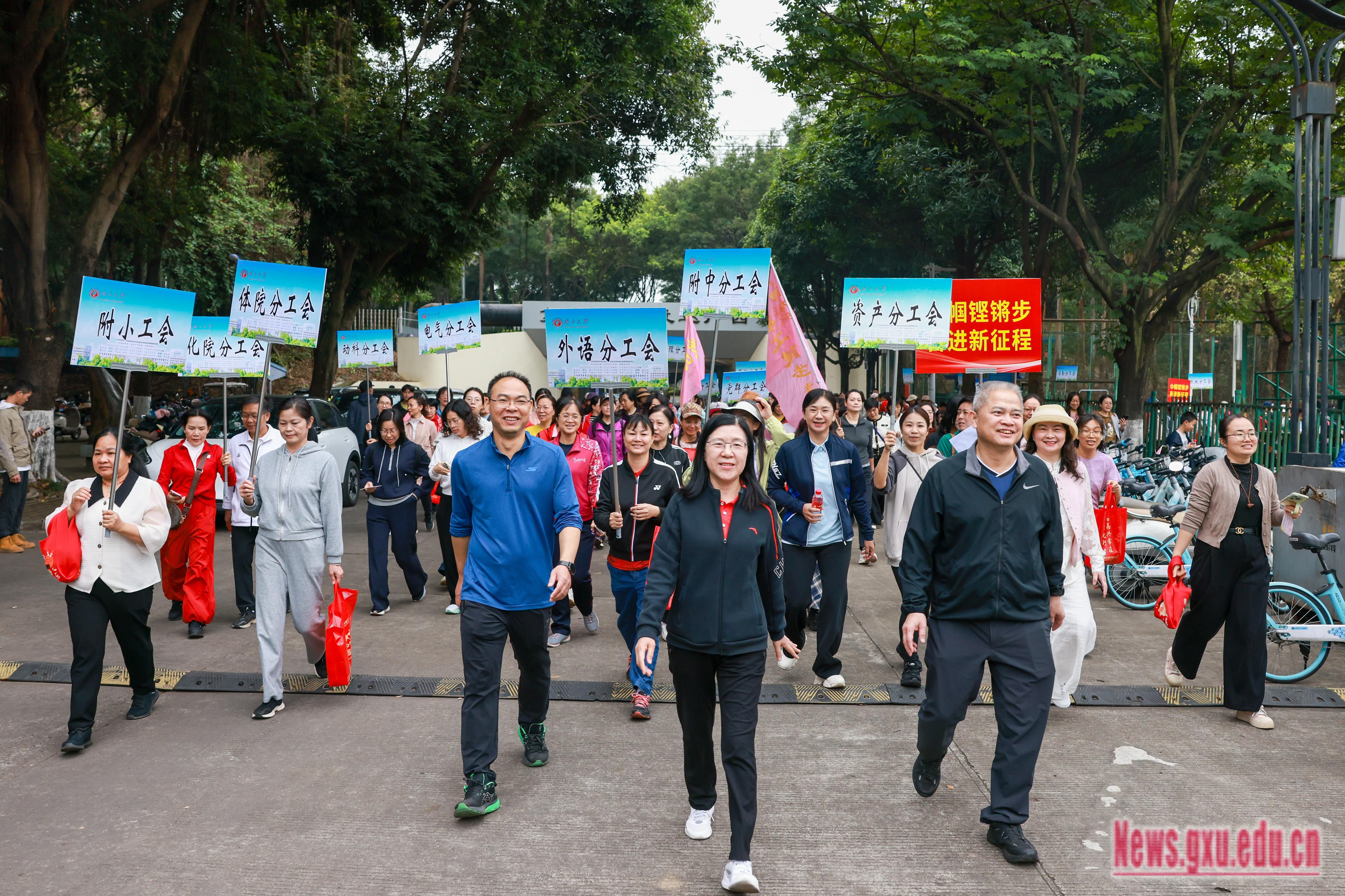春晖沐芳华,奋进正当时。为庆祝第116个“三八”国际妇女节,展现女教职工昂扬向上的精神风貌,3月7日,我校举办“巾帼铿锵步 奋进新征程”庆祝“三八”国际妇女节女教职工健步走活动。校党委副书记、自治区纪委监委驻广西大学纪检监察组组长、校纪委书记金顺南,校党委常委、副校长、工会主席刘向出席活动。