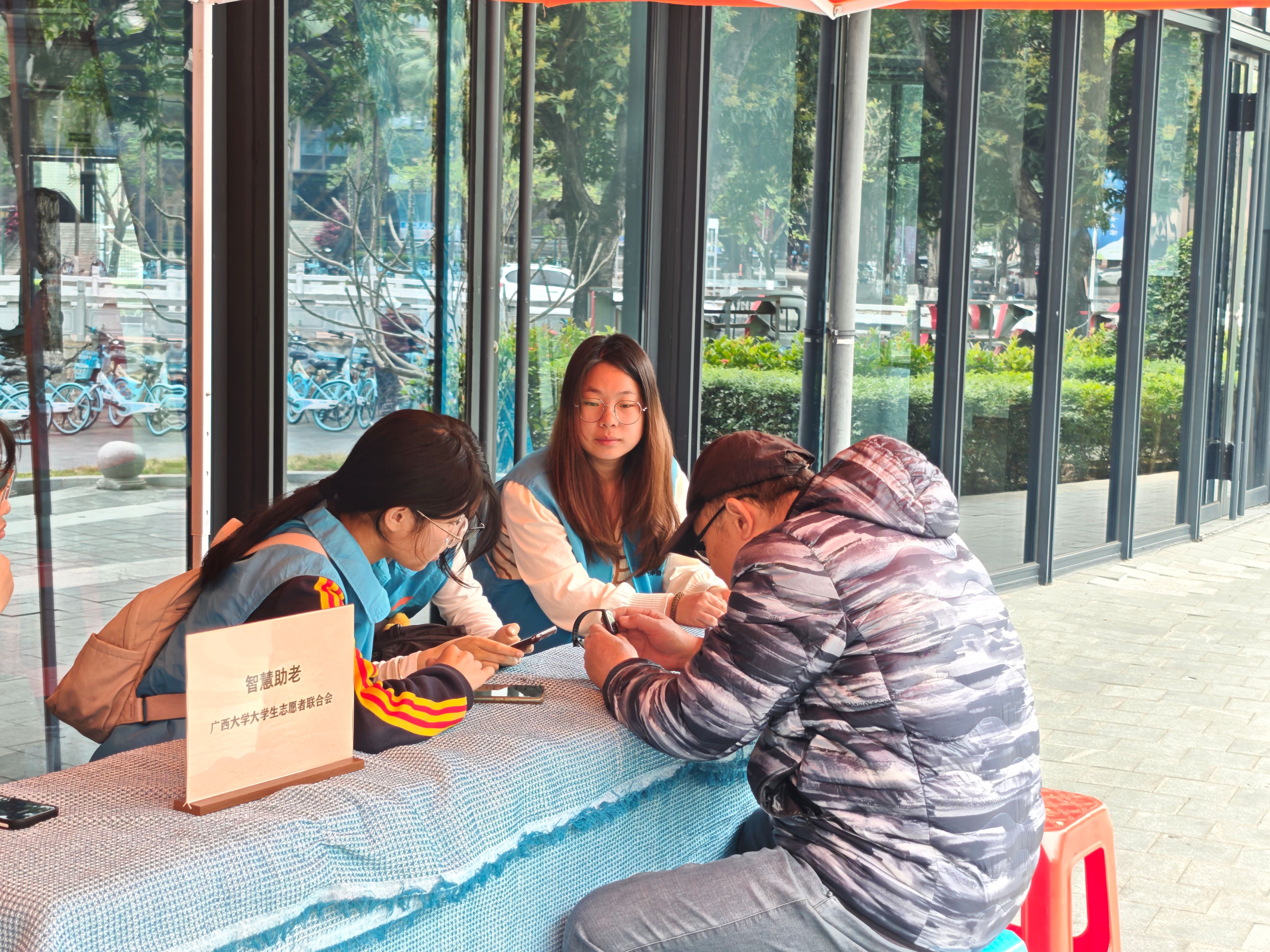 生命科学与技术学院组织志愿者前往南宁市新阳真情养老院,开展“情暖夕阳,爱驻心间”学雷锋敬老助老志愿服务活动。志愿者们认真清扫环境,为老人们营造干净整洁的居住环境;在智慧助老体验环节,化身“科技小老师”,手把手教老人们体验AI趣味玩法,从趣味通话、创意生图到静态老照片动态化制作,带领老年群体感受智能科技的魅力。