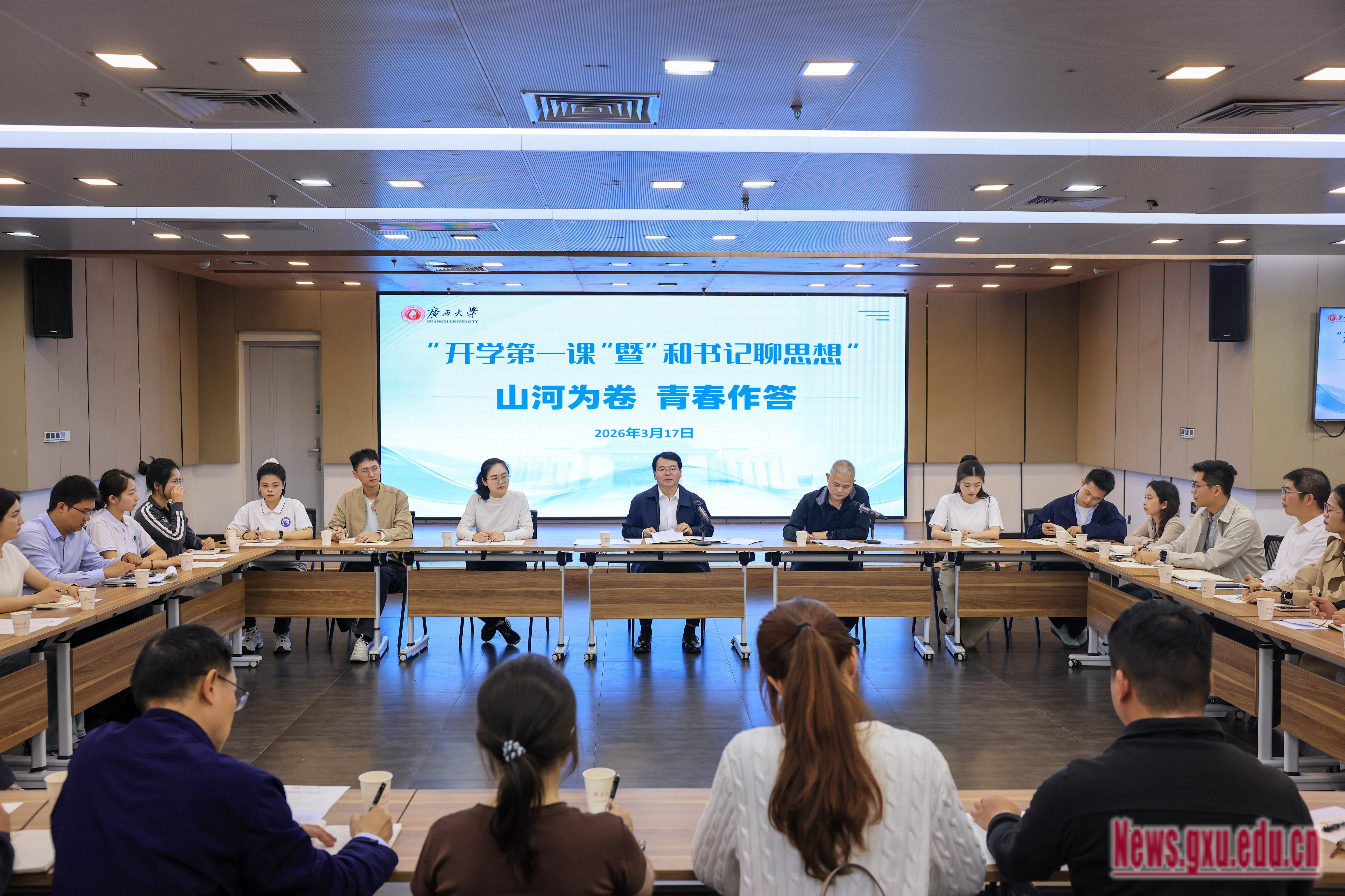 3月17日,我校在大学生活动中心开展2026年春季学期“开学第一课”暨“和书记聊思想”活动。校党委书记李国忠出席活动并讲授“开学第一课”。校党委常委、副校长刘向主持活动。
