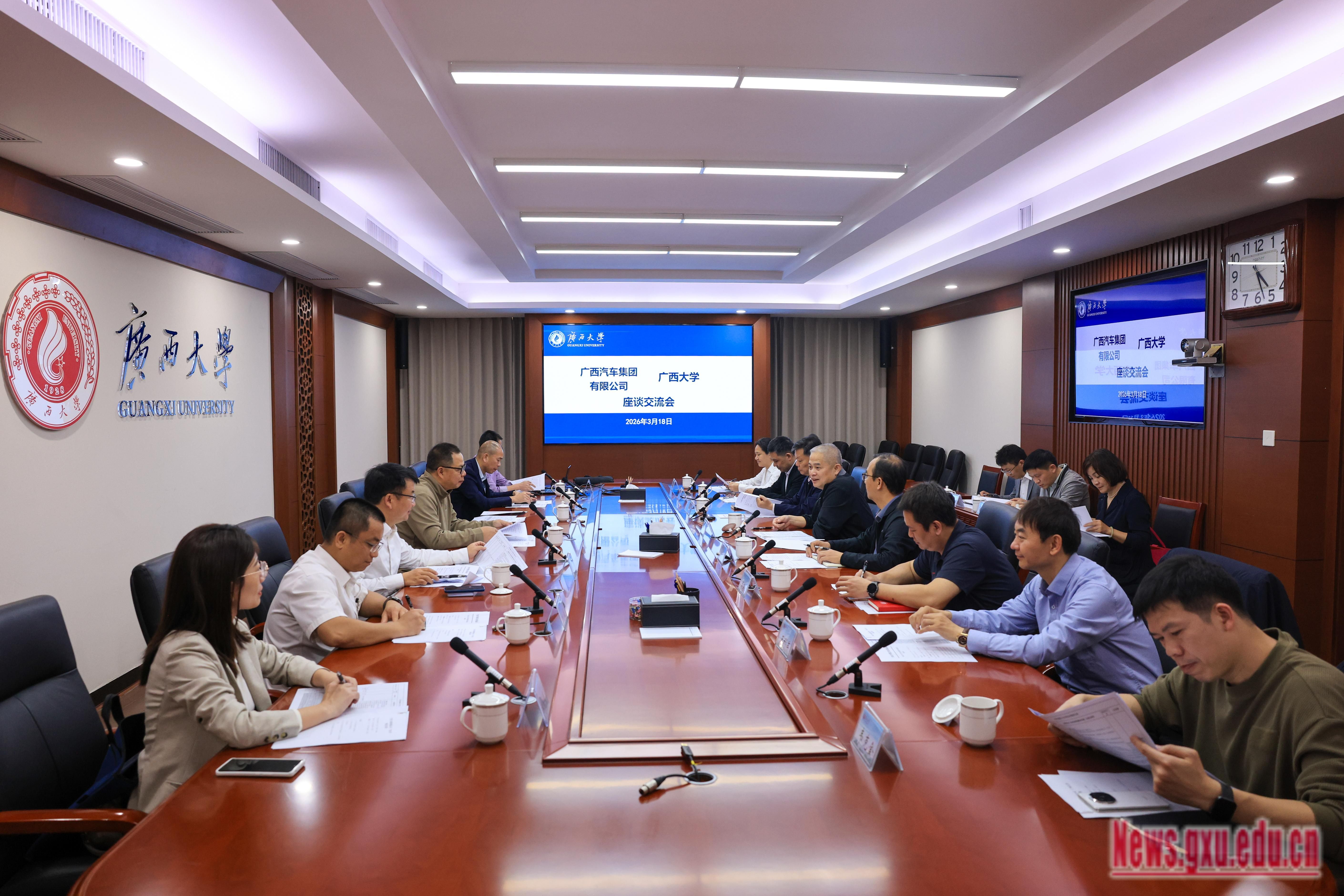 广西汽车集团有限公司相关部门负责同志,我校机械及高端装备制造/新能源汽车及电池工作专班、学生工作部(处)、校友工作办公室等相关单位负责同志参加座谈。