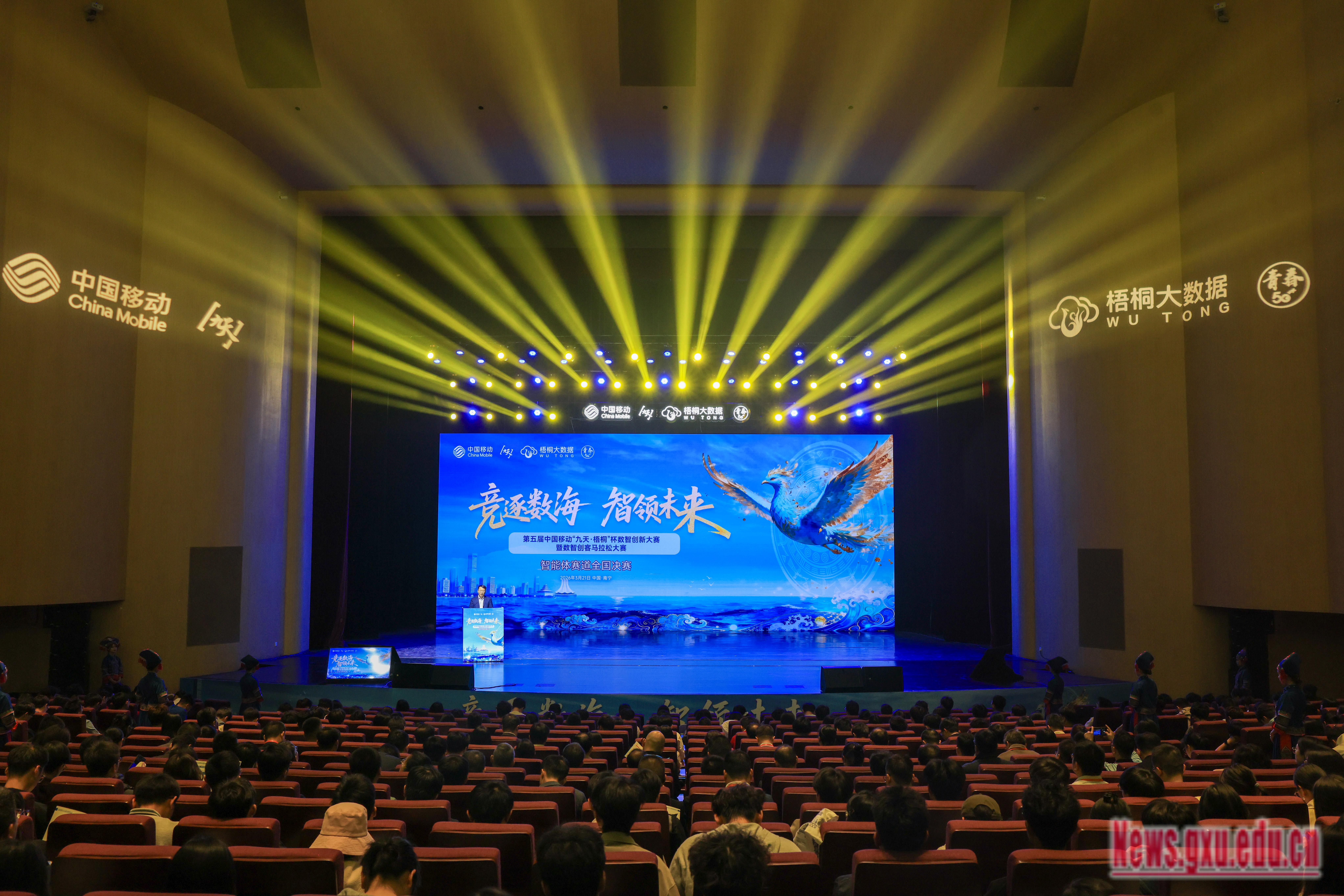 3月21日,第五届中国移动“九天·梧桐”杯数智创新大赛暨数智创客马拉松大赛智能体赛道全国决赛在我校举行。本次大赛由中国移动通信集团有限公司主办,中国移动数智化部承办,我校与中国移动通信集团广西有限公司合办。共青团广西壮族自治区委员会副书记左向蕾,校党委常委、副校长赵双良,中国移动通信集团广西有限公司党委委员、董事、副总经理舒敏根,华东理工大学党委副书记沈海涛,广州大学副校长李进,广西民族大学副校长高兴宇,梧州学院副校长邓小林等出席活动。