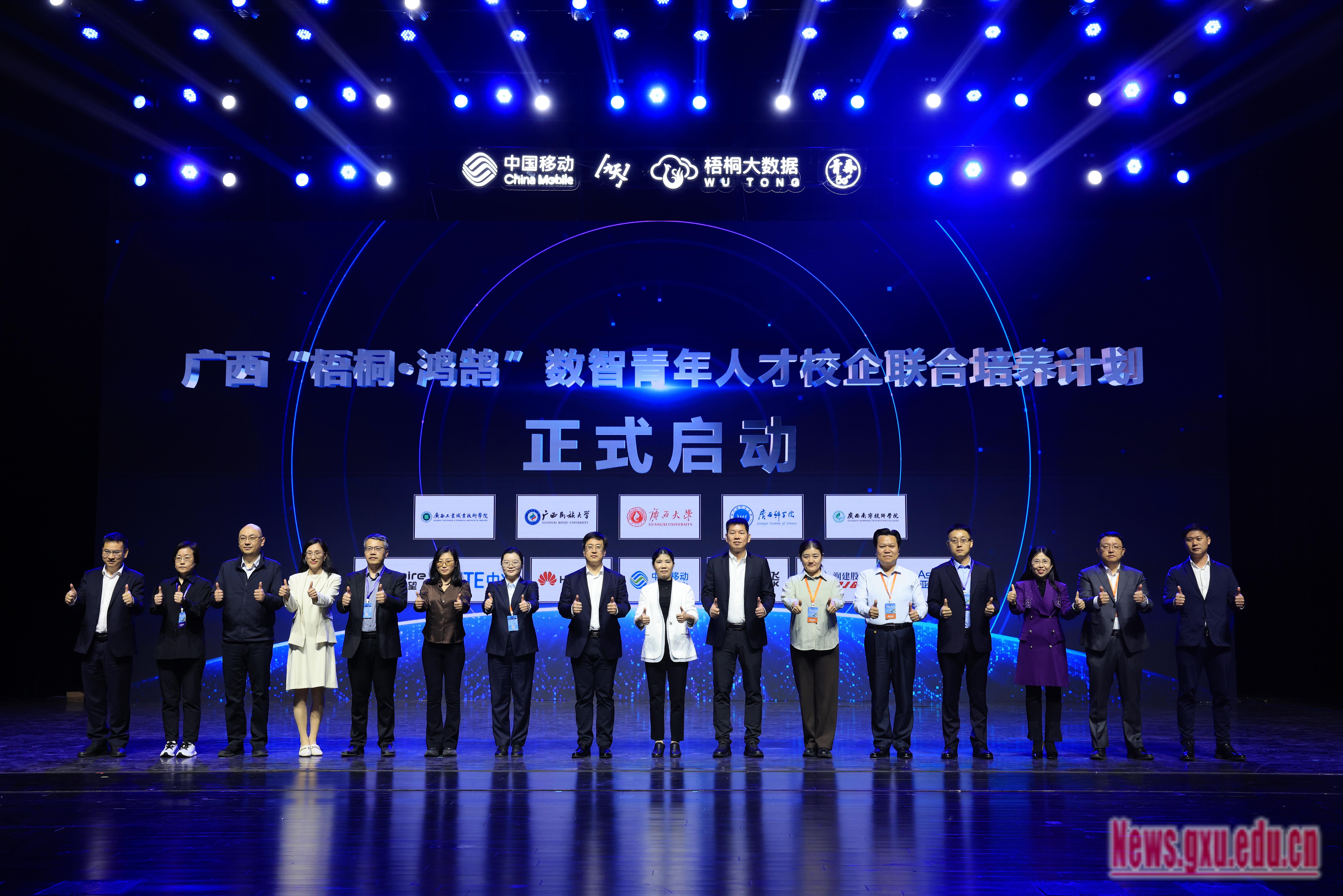 大赛期间,广西锰业智能冶炼大模型数据训练基地、广西“梧桐·鸿鹄”数智青年人才校企联合培养计划、中国移动(广西)“梧桐·鸿鹄”实训认证中心等一系列重要合作项目与计划正式启动。政府、企业、高校三方协同发力,旨在系统构建从理论学习到实战实训的全链条数字人才培养支撑体系,精准对接产业需求与教育资源,有效贯通“产学研用”各环节,为广西数字经济发展持续输送高素质数智人才,加速科技创新成果向现实生产力转化。