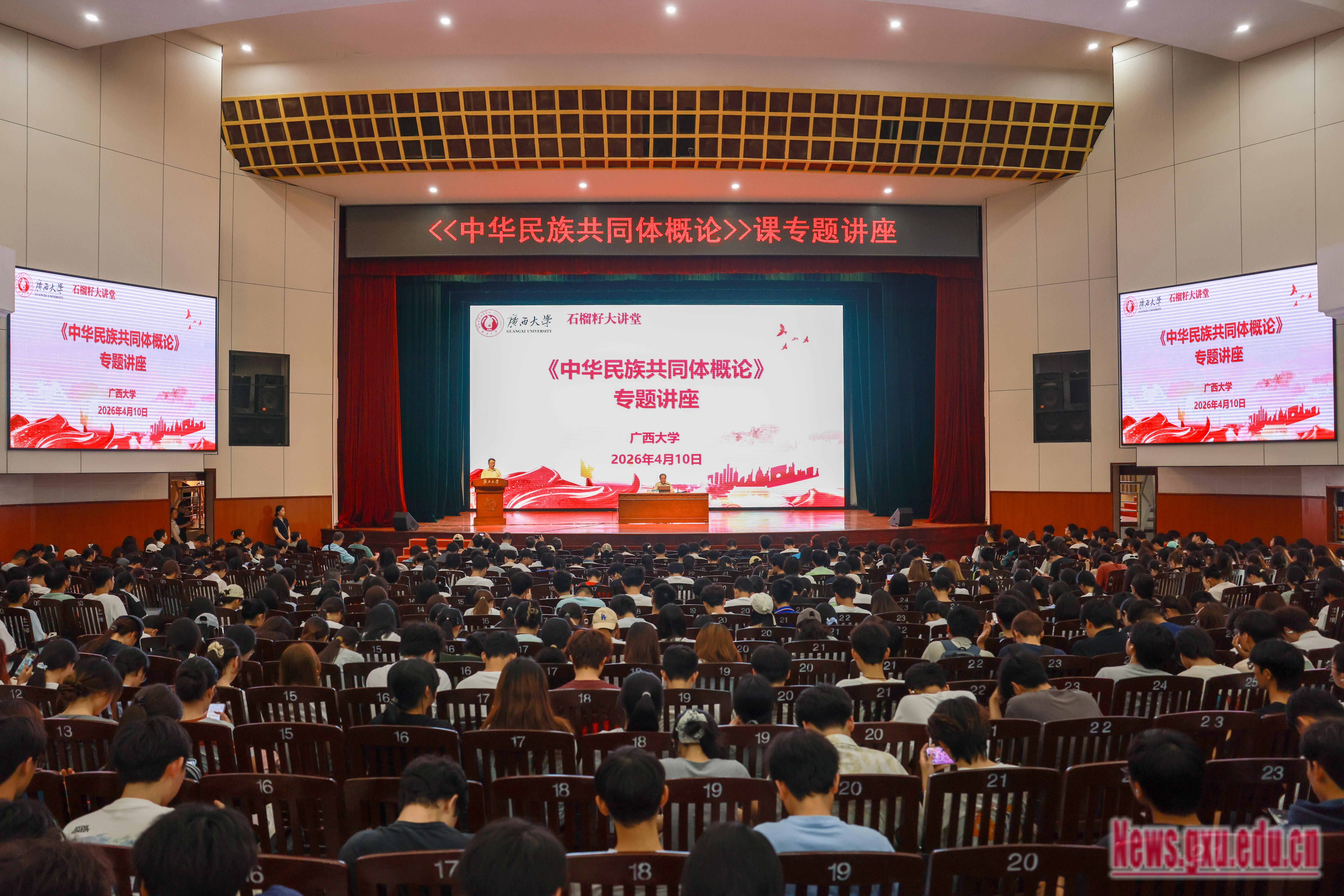 我校全体《中华民族共同体概论》课程授课教师、石榴籽宣讲团成员及2025级1000多名学生聆听讲座。