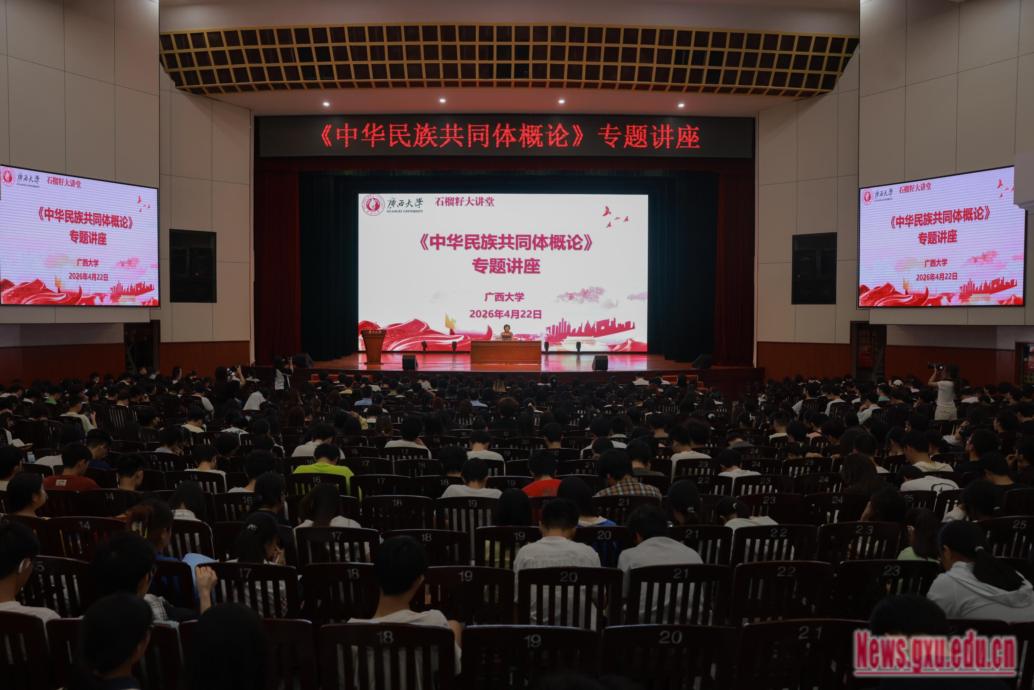 我校全体《中华民族共同体概论》课程授课教师、石榴籽宣讲团成员及2025级860余名学生聆听讲座。