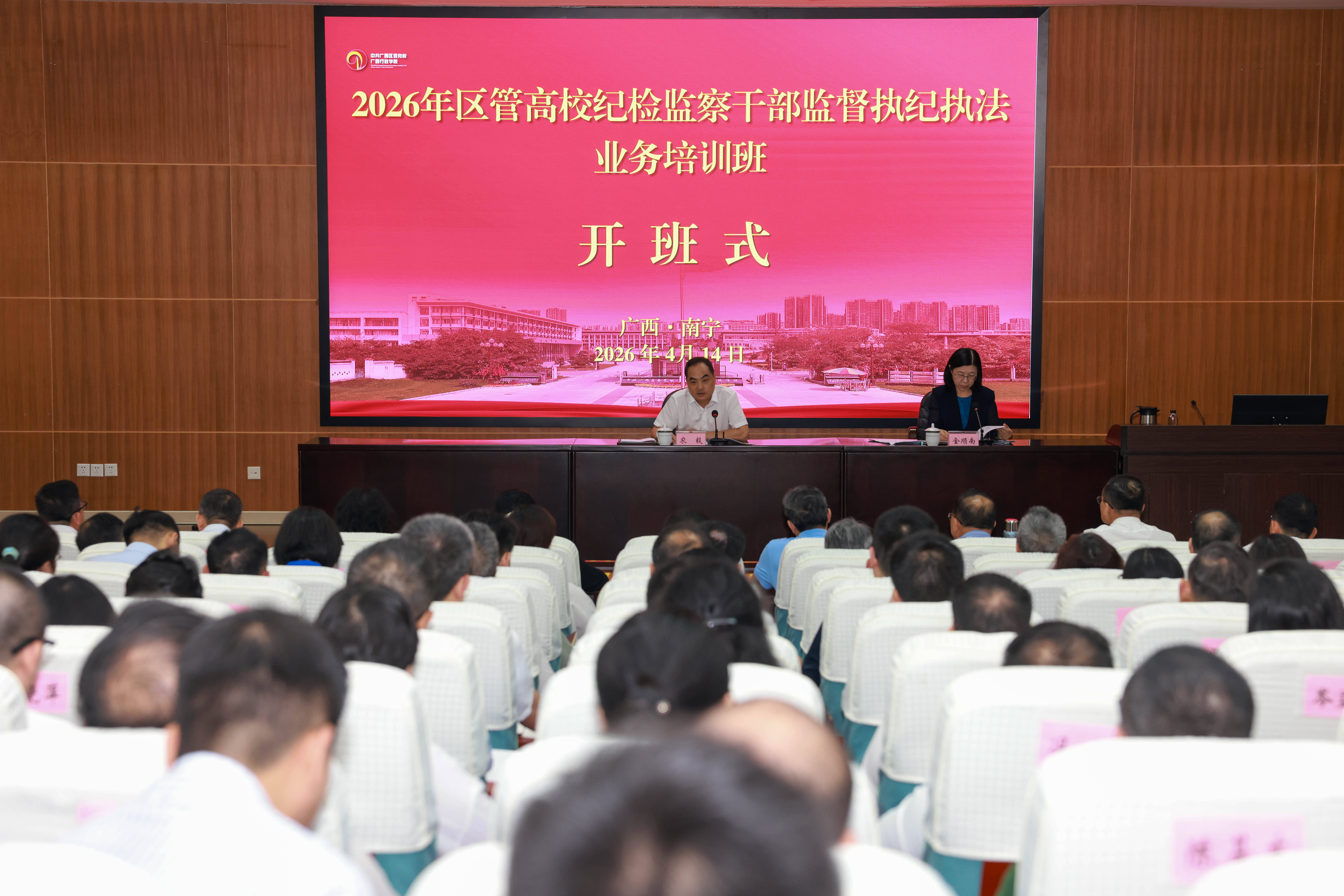 近日,2026年区管高校纪检监察干部监督执纪执法业务培训班在自治区党委党校开班。本次培训由自治区纪委监委驻教育厅纪检监察组主办,自治区纪委监委驻广西大学纪检监察组、校纪委机关承办。自治区纪委监委驻教育厅纪检监察组组长农毅出席开班式并作动员讲话,校党委副书记、自治区纪委监委驻广西大学纪检监察组组长、校纪委书记金顺南主持开班式,并在结业式上作培训总结。